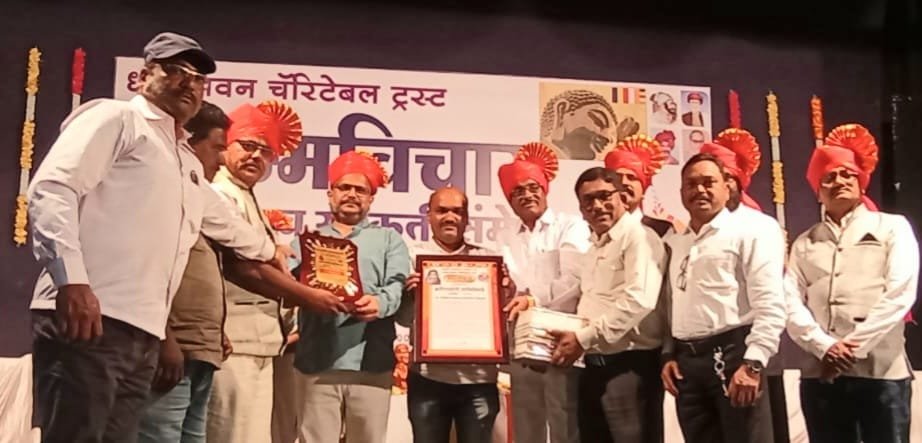 मसुरे प्रतिनिधी: धम्मविचार साहित्य व संस्कृती संम्मेलन अध्यक्ष संजय आवटे यांच्या हस्ते राज्यस्तरीय सावीत्रीमाई पुरस्कार मसुरे येथील आर पी बागवे हायस्कुल व उच्च माध्यमिक तांत्रीक विद्यालयाचे मुख्याध्यापक आयु. किशोर अर्जून चव्हाण यांना प्रदान करण्यात आला.यावेळी डॉ. सतीशकुमार पाटील, विजया कांबळे, डॉ.नंदकुमार गोंधळी,अॅड.करुणा विमल, मालवणचे आयु.सिध्दार्थ जाधव, संजय जाधव, विलास वळंजु, ग्रामसेवक भाई जाधव उपस्थित होते.फोटो: मसुरे येथील आर पी बागवे हायस्कुल मुख्याध्यापक आयु. किशोर चव्हाण यांना पुरस्कार प्रदान करताना मान्यवर छाया: स्वामी आर्ट