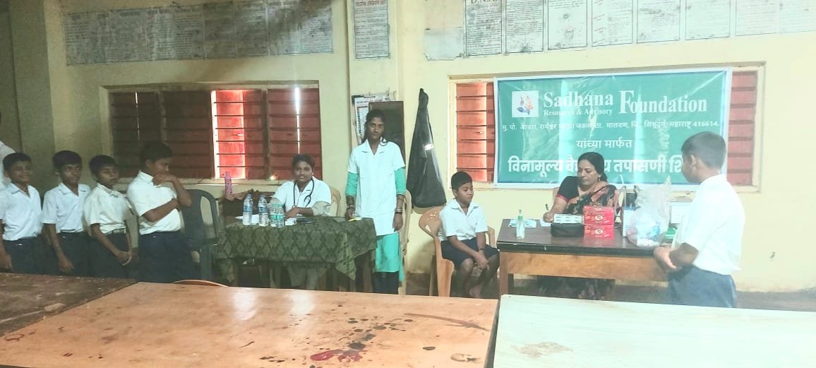 ‘साधना रिसोर्सेस अँड एडवायजरी फाऊंडेशन आचरा’ या संस्थेच्या वतीने ओझर विद्यामंदिर कांदळगाव प्रशालेमध्ये नुकतेच शाळेतील विद्यार्थ्यांसाठी मोफत वैद्यकीय तपासणी शिबिर संपन्न झाले. संस्थेच्या संचालिका डॉ. सुचेता नाईक यांनी परिचारिका सुवर्णा देऊलकर व चेतना जाधव यांच्या साथीने ओझर विद्यामंदिरच्या विद्यार्थ्यांची व शिक्षकांची आरोग्य तपासणी करून आवश्यकतेनुसार गोळ्या व औषधांचे मोफत वाटप केले. विद्यार्थ्यांनी आपल्या आरोग्याची काळजी घेण्यासाठी डॉ. सुचेता नाईक यांनी प्रत्येक विद्यार्थ्याला तपासणी करताना वैयक्तिक मार्गदर्शन केले.