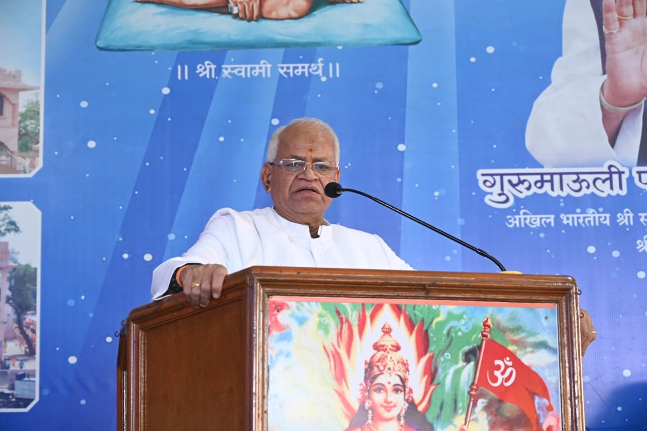 नाशिक प्रतिनिधी :- अखिल भारतीय श्री स्वामी समर्थ सेवामार्गाच्या माध्यमातून सेवेकर्यांनी समाजाच्या सर्वांगीण विकासासाठी सेवाकार्य करुन योगदान द्यावे, असे आवाहन सेवामार्गाचे प्रमुख गुरुमाऊली श्री. आण्णासाहेब मोरे यांनी केले तेव्हा उपस्थित हजारो सेवेकर्यांनीही टाळ्यांचा जोरदार कडकडाट करुन गुरुमाऊलींना प्रतिसाद दिला.