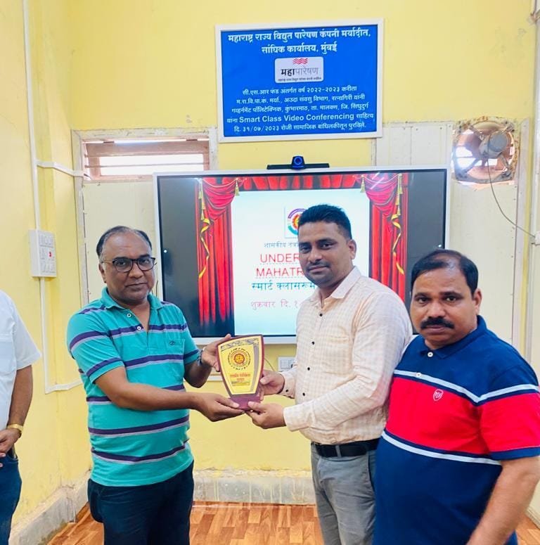 शासकीय तंत्रनिकेतन मालवण या संस्थेला महापारेषण यांच्या सीएसआर फंडातून स्मार्ट क्लासरूम इनट्रेक्टिव्ह बोर्ड प्रदान करण्यात आला. सदर क्लास रूमचे अनावरण महापारेषण अभियंता श्री भोगले यांच्याहस्ते करण्यात आले. या कार्यक्रमास संस्थेचे प्राचार्य, महापारेषण चे तंत्रज्ञ श्री बावलेकर, कॉलेज विभाग प्रमुख, अधिकारी कर्मचारी व विद्यार्थी उपस्थित होते. संस्थेतील सर्व विद्यार्थ्यांना या स्मार्ट क्लासरूमचा नक्कीच फायदा होईल असे महापारेषण कुडाळचे अभियंता श्री भोगले यांनी सांगितले.