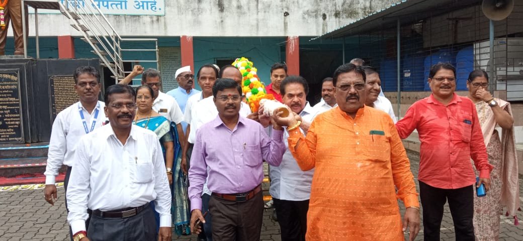 उरण प्रतिनिधी: रयत शिक्षण संस्थेच्या श्री छत्रपती शिवाजी हायस्कूल व लोकनेते दि.बा.पाटील जुनिअर कॉलेज, दहागाव विभाग जासई या विद्यालयात 22 सप्टेंबर कर्मवीर जयंती रोजी रयत शिक्षण संस्थेचे संस्थापक, पद्मभूषण, डॉक्टर कर्मवीर भाऊराव पाटील यांचा 136 वा जयंती सोहळा मोठ्या उत्साहात संपन्न झाला. या सोहळ्यासाठी शाळा व्यवस्थापन व विकास समितीचे अध्यक्ष, भारतीय मजदूर महासंघाचे राष्ट्रीय महामंत्री, कामगार नेते सुरेश पाटील तसेच विद्यालयाचे चेअरमन अरुण जगे यांच्या हस्ते कर्मवीरांच्या पुतळ्याचे पूजन केले. तसेच विद्यालयाच्या प्रांगणात असलेल्या थोर महापुरुषांच्या पुतळ्यांचे पूजन प्रमुख पाहुण्यांच्या हस्ते केले गेले. विद्यालयाचे प्राचार्य रयत शिक्षण संस्थेचे लाईफ वर्कर अरुण घाग, विद्यालयाच्या उपमुख्याध्यापिका पाटील एस. एस. यांच्या हस्ते कर्मवीरांच्या पालखीचे पूजन केले. फुलांनी सजविलेल्या पालखीत कर्मवीरांची प्रतिमा ठेवून विद्यालयाच्या लेझीम व बँड पथकाच्या गजरात पालखीची मिरवणूक सर्व शिक्षक, विद्यार्थी यांच्या समवेत संपूर्ण जासई गावातून फिरली.