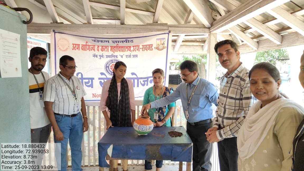 २६ सप्टेंबर वार्ता: कोकण ज्ञानपीठ उरण वाणिज्य व कला महाविद्यालयातील राष्ट्रीय सेवा योजना विभागाच्या वतीने ५५ वा राष्ट्रीय सेवा योजना स्थापना दिन साजरा करण्यात आला. तसेच महाविद्यालयात मेरी माटी मेरा देश उपक्रमांतर्गत अमृत कलशात माती संकलन व स्वच्छता सप्ताह साजरा केला जात आहे.