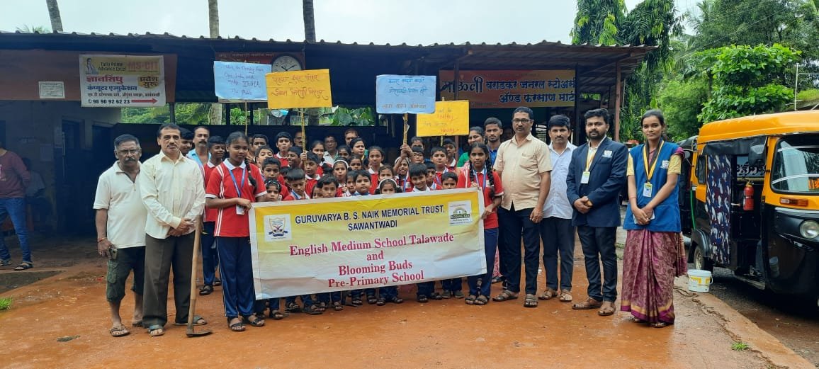 सावंतवाडी प्रतिनिधी: गुरुवर्य बी. एस. नाईक मेमोरियल ट्रस्ट सावंतवाडी संचलित इंग्लिश मीडियम स्कूल तळवडे शाळेने स्वच्छता ही सेवा या उपक्रमांतर्गत तळवडे बाजारपेठ येथे एक तास श्रमदान करून बाजारपेठेतील परिसर स्वच्छ केला. परिसर स्वच्छ करण्यापूर्वी सर्वांनी कचरा न करण्याबाबत प्रतिज्ञा घेतली.