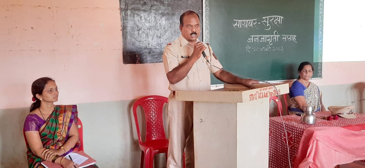 यावेळी उपस्थित विद्यार्थ्यांना एमकेसीएल च्या महेश चौकेकर यांनी पी पी टी प्रेझेंटेशन सादर करून सायबर गुन्ह्याबाबत माहिती दिली. सायबर गुन्ह्यांचे प्रमाण वाढत आहे. यात गुन्हेगार सराईत असून नागरिकांना अनेक युक्त्या करून फसवित आहेत. याबाबत जन माणसांत जनजागृती होणे आवश्यक आहे असे पो. उपनिरीक्षक सुधीर कदम म्हणाले.