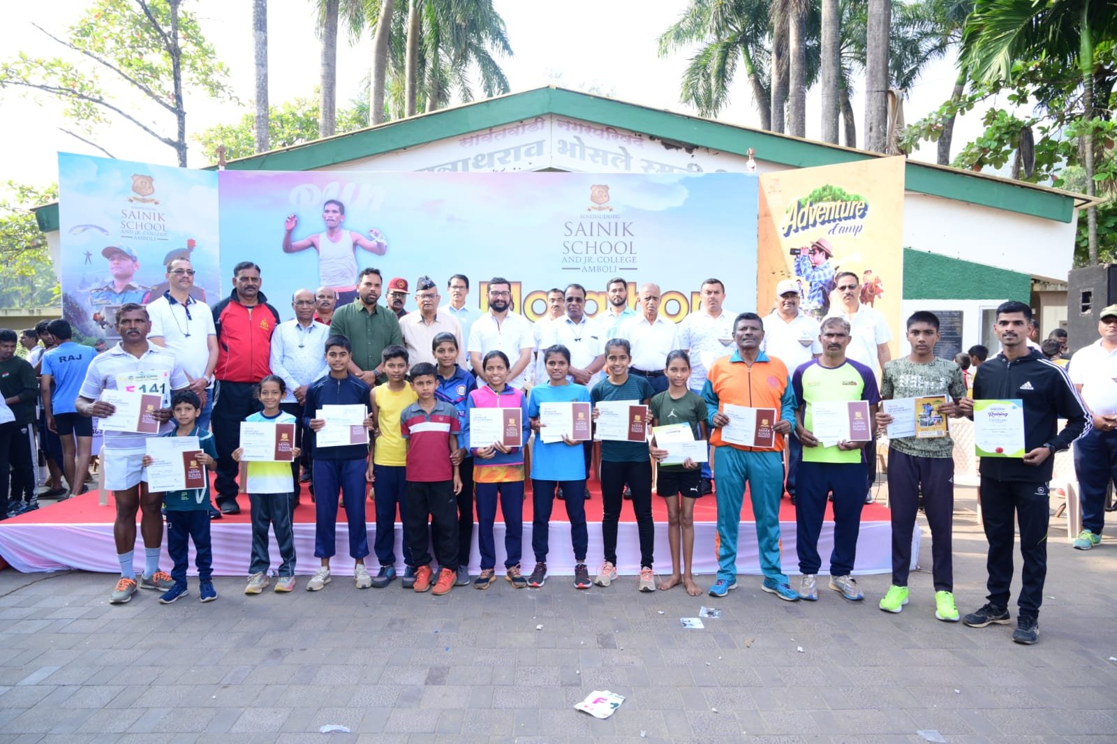 सावंतवाडी: सिंधुदुर्ग सैनिक स्कूल अँड ज्युनियर कॉलेज आंबोली यांच्यावतीने आयोजित मॅरेथॉन स्पर्धेस उदंड प्रतिसाद लाभला.सिंधुदुर्ग सैनिक स्कूल अँड ज्युनियर कॉलेज आंबोली आणि नगर परिषद सावंतवाडी यांच्या संयुक्त विद्यमाने ही स्पर्धा आयोजित करण्यात आली होती.राज्य भरातून चारशे स्पर्धक सहभागी झाले होते. स्पर्धेची सुरवात जनरल जगन्नाथराव भोसले उद्यान येथून करण्यात आली.प्रारंभी राष्ट्रगीत गायन करण्यात आले.सैनिक स्कूल कॅडेट अनुराग बागडी याने शहिद जवानांवर कविता सादर केली.यानंतर महाराष्ट्र गीतगायन करण्यात आले.खड्या आवाजात देण्यात आलेल्या शिवगर्जनेने स्पर्धकांमध्ये जोश संचारला.सदर स्पर्धा सैनिक स्कूलचे संस्थापक अध्यक्ष दिवंगत पी.एफ. डाॅन्टस यांच्या पुण्य स्मृतींस समर्पित करण्यात आली.५८, एन.सी.सी.बटालियनचे कमांडिंग ऑफिसर कर्नल दिपक द्याल,सुभेदार मेजर दिनेश गेडाम,सैनिक पतसंस्था चेअरमन बाबुराव कवठेकर,व्हाईस चेअरमन चंद्रकांत शिरसाट,कॅथलिक पतसंस्था चेअरमन आनमारी डिसोजा,जाॅय डाॅन्टस , क्रिडाशिक्षक शैलेश नाईक,डाॅ.मिलिंद खानोलकर, कार्यालयीन सचिव दिपक राऊळ,सुधीर नाईक,गजानन परब,पाचार्य एन.डी.गावडे ,प्रल्हाद तावडे,स्कूल स्टाफ,सैनिक पतसंस्था स्टाफ उपस्थित होते.
