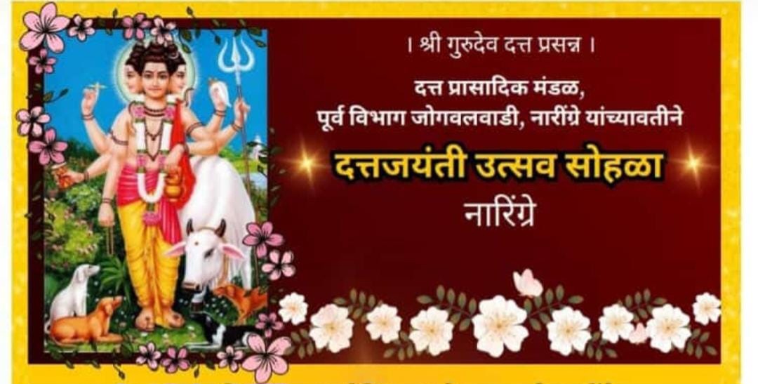 मसुरे प्रतिनिधी: दत्त प्रासादिक मंडळ पूर्व विभाग जोगवलवाडी, नारींग्रे यांच्यावतीने २६ डिसेंबर रोजी दत्तजयंती उत्सव सोहळा आयोजित करण्यात आला आहे.