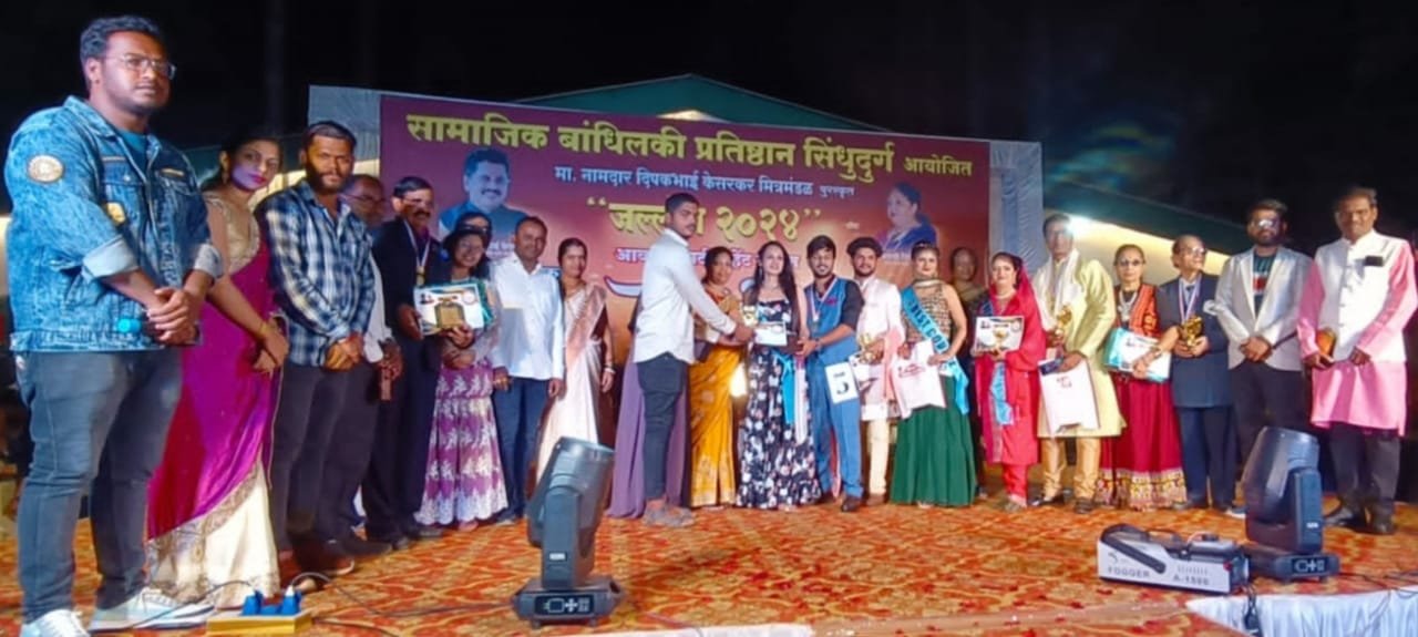 सावंतवाडी: सामाजिक बांधिलकी प्रतिष्ठान सिंधुदुर्ग आणि ना.दीपक भाई केसकर मित्रमंडळ आयोजित नववर्ष स्वागत कार्यक्रम दिनांक १ जानेवारी रोजी “आवाज आर्ट इव्हेंट प्रस्तुत बेधुंद २०२४ हा महाराष्ट्र आणि गोव्यातील नामांकित गायक वादक कलाकारांचा लाईव्ह म्युझिकल गीतांचा कार्यक्रम सादर करण्यात आला याच दरम्यान सावंतवाडी मध्ये प्रथमच बेस्ट कपल स्पर्धा तुफान रंगली. या तुफान गर्दी झालेल्या या स्पर्धेचे बेस्ट कपल होण्याचा मान “जंभोरे कपल” लां मिळाला महेश – स्नेहल जांभोरे जोडीला प्रथम पारितोषिक बक्षीस म्हणून जगन्नाथ गंगाराम पेडणेकर ज्वेलर्स तर्फे सोन्याची नथ आणि सन्मानचिन्ह,मेडल , प्रशिस्तीपत्रक देऊन गौरविण्यात आले..तर संकेत पूजा सावंत दुसरा तर वडोकर दाम्पत्य यांनी तिसरा क्रमानं मिळवला..ह्या स्पर्धेतील सर्वांत वयस्कर सडेकर दांपत्याने सर्वांचीच मन जिंकून प्रेमाला वय नसतं हे दाखवून दिलं.. ह्या स्पर्धेतील द्वितीय तृतीय क्रमांक साठी चांदीच्या भेटवस्तू आणि सन्मानचिन्ह तर सडेकर आणि सलाडणा आणि सावंत डॉक्टर दाम्पत्यांना उत्तेजनार्थ बक्षिसे महालक्ष्मी तथास्तु मॉल कडून देण्यात आली..ह्या संपूर्ण स्पर्धेचे परीक्षण ज्येष्ठ रंगकर्मी आणि पत्रकार श्री प्रवीण मांजरेकर आणि अभिनेता निवेदक श्री निलेश गुरव यांनी केली. स्पर्धे दरम्यान निवेदक राहुल कदम आणि शुभम धुरी यांनी उपस्थित रसिकांची मन जिंकली.