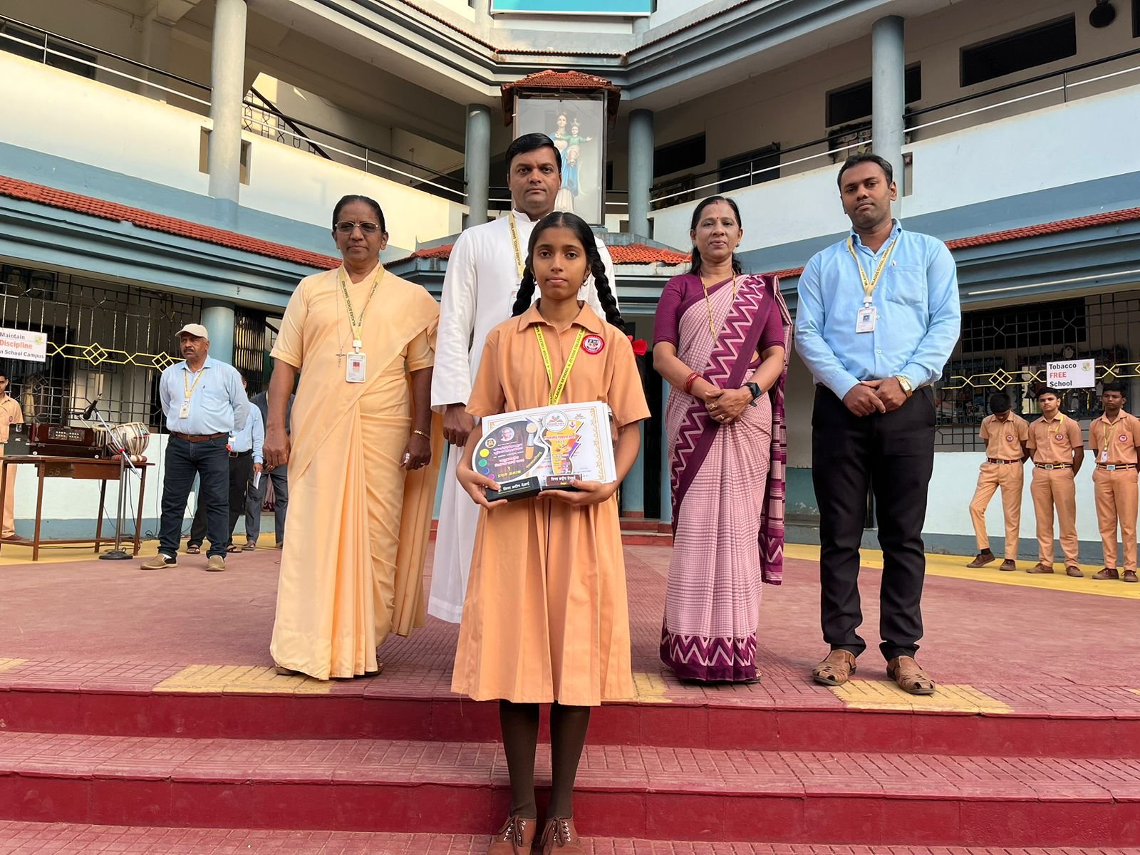 प्रशालेचे मुख्याध्यापक फादर रिचर्ड सालदान्हा यांच्या हस्ते प्रशस्तीपत्र व सन्मानचिन्ह देऊन तिचा गौरव करण्यात आला.यावेळी प्रशालेच्या उपमुख्याध्यापिका सिस्टर मेबल कार्व्हालो, पर्यवेक्षिका सौ.मेघना राऊळ तसेच सर्व शिक्षक व शिक्षकेतर कर्मचारी उपस्थित होते.