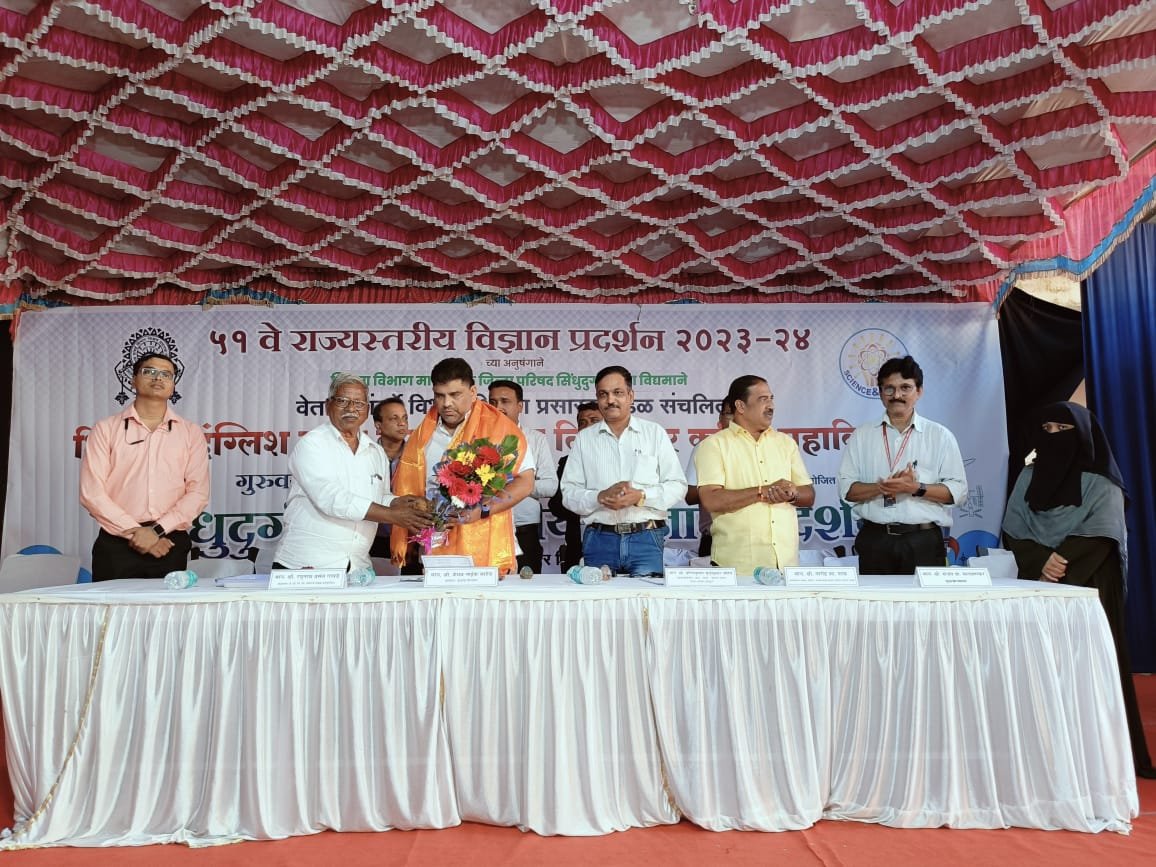 सिंधुदुर्ग: जिल्हा परिषद सिंधुदुर्ग शिक्षण विभागाच्या वतीने ५१ वे सिंधुदुर्ग जिल्हास्तरीय विज्ञान प्रदर्शन कुडाळ तालुक्यातील शिवाजी इंग्लिश स्कूल व दादासाहेब तिरोडकर कनिष्ठ महाविद्यालय, पणदूर तिठा येथे आयोजित करण्यात आले होते. या विज्ञान प्रदर्शन सोहळ्याला आमदार वैभव नाईक यांनी उपस्थिती दर्शविली. तसेच विज्ञान प्रदर्शनातील प्रतिकृतींची पाहणी केली. या कार्यक्रमादरम्यान निबंध स्पर्धा, वक्तृत्व स्पर्धा, प्रश्न मंजुषा स्पर्धा, विज्ञान प्रदर्शन प्रतिकृती अशा स्पर्धा घेण्यात आल्या होत्या त्यात विजयी स्पर्धकांना आ. वैभव नाईक यांच्या हस्ते पारितोषिक वितरण करण्यात आले.