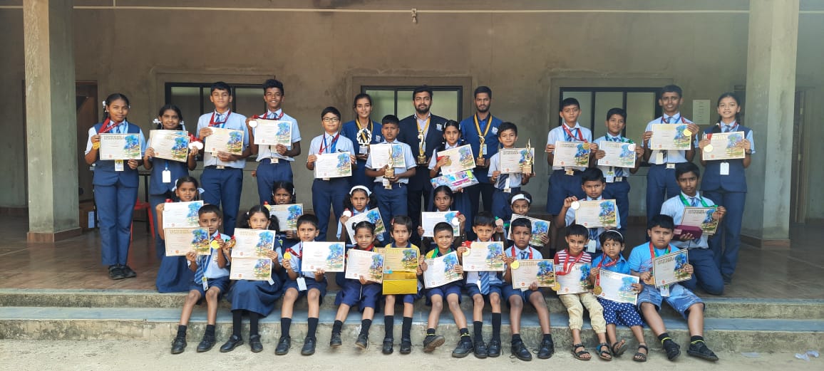 हस्ताक्षर स्पर्धेत उत्तेजनार्थ क्रमांक पटकावत पारितोषिक मिळवले आहे. तसेच इतर विद्यार्थ्यांनी सुवर्ण पदकाचे कमाई करत घवघवीत यश संपादन केले. स्पर्धेसाठी कला विषय सहाय्यक शिक्षक श्रद्धा पायनाईक व वसंत सोनुर्लेकर यांचे विशेष मार्गदर्शन लाभले. या यशाबद्दल संचालिका मैथिली मनोज नाईक यांनी यशस्वी विद्यार्थ्यांचे पुष्पगुच्छ देवून अभिनंदन करत पुढे होणाऱ्या स्पर्धेसाठी शुभेच्छा दिल्यात. यावेळी शाळेचे मुख्याध्यापक अजय वामन बांदेकर, शिक्षक- शिक्षकेतर कर्मचारी आणि विद्यार्थी उपस्थित होते .