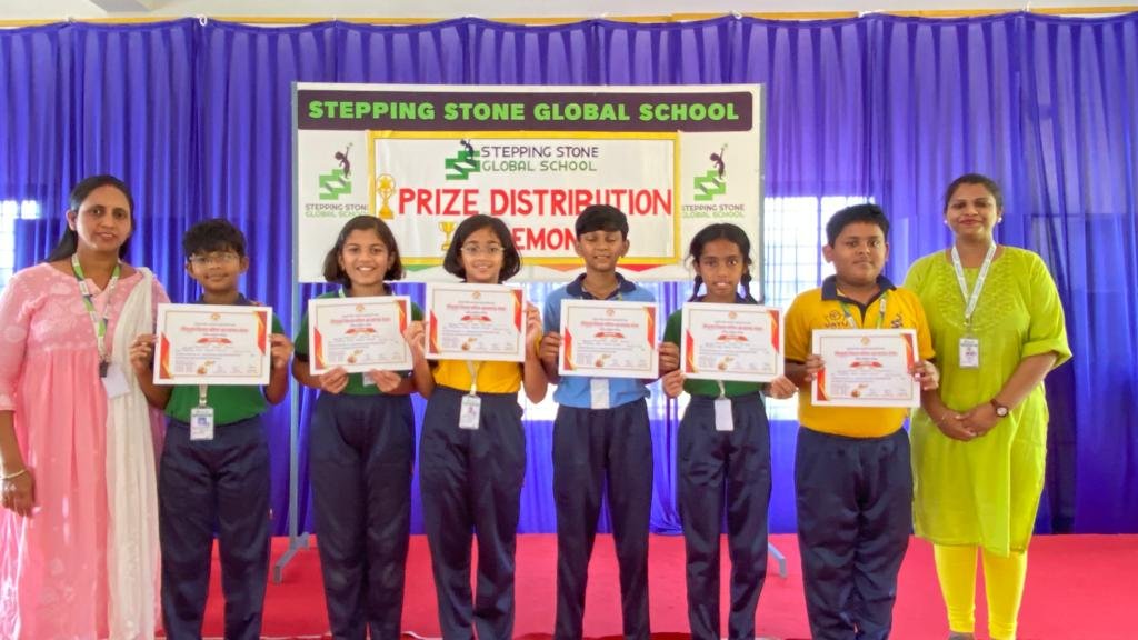 सावंतवाडी: स्टेपिंग स्टोन ग्लोबल स्कूलमधील विद्यार्थ्यांना गणित प्राविण्य परीक्षेत घवघवीत यश प्राप्त झाले. या परीक्षेत एकूण एकोणीस विद्यार्थ्यांचा सहभाग होता. त्यातील सहा विद्यार्थी उत्तीर्ण झाले. त्यामध्ये, इयत्ता पाचवी मधील कु. हेरंब शामसुंदर नाटेकर, कु. सोहम सचिन देशमुख, कु. श्री तुषार कोरगावर, कु. सायना श्रीराम अळवणी, कु. स्पृहा अमेय आरोंदेकर, कु. अस्मि धीरज सावंत या विद्यार्थ्यांचा समावेश होता. तसेच, त्यापैकी ‘ कु. स्पृहा अमेय आरोंदेकर ‘ या विद्यार्थिनीला गणित प्राविण्य परीक्षेतील पुढील टप्प्यासाठी निवडले गेले. या सर्व विद्यार्थ्यांना प्रमाणपत्र देऊन गौरविण्यात आले. परीक्षेत सहभागी विद्यार्थ्यांना शालेय सहा. शिक्षिका सौ. प्राची साळगावकर यांचे मार्गदर्शन लाभले. वरील परीक्षेत सहभागी विद्यार्थ्यांचे शाळेचे संस्थापक श्री. रुजुल पाटणकर व मुख्याध्यापिका सौ. दिशा कामत यांनी कौतुक केले.