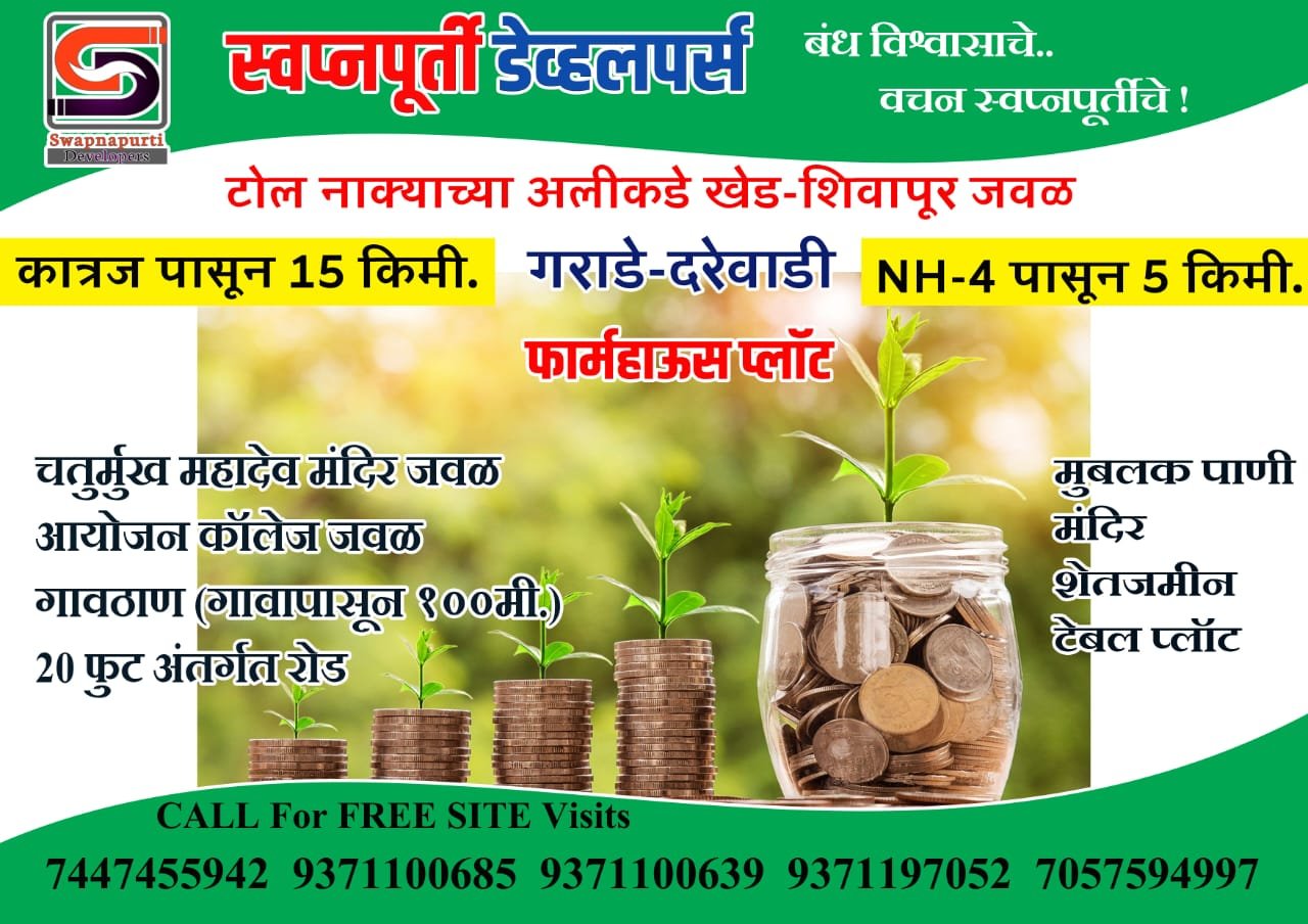बांधकाम क्षेत्रातील एका विश्वासनीय, पारदर्शी व्यवहार आणि १००% टाइटल क्लिअर असलेल्या स्वप्नपूर्ती डेव्हलपर कंपनीसोबत आजच आपले घराचे स्वप्न पूर्ण करण्यासाठी संपर्क करा.