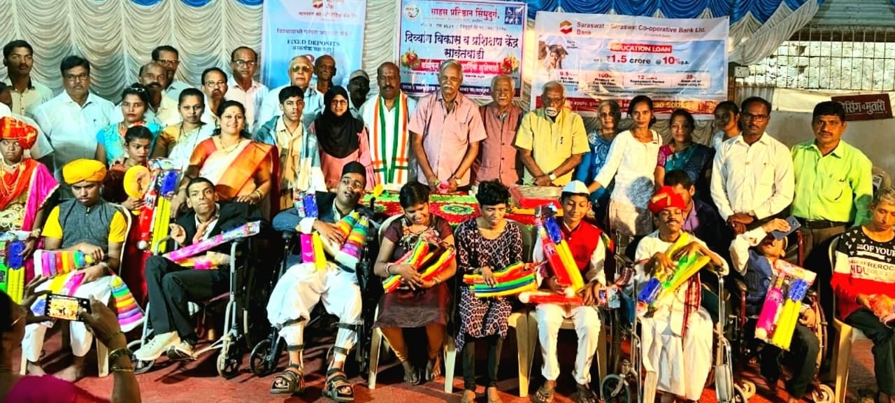 सामाजिक बांधिलकी प्रतिष्ठान सिंधुदुर्ग च्या वतीने व रूपाली मुद्राळे हिच्या पुढाकारातून मुलांना क्रीडा साहित्य भेट म्हणून देण्यात आले व खाऊचे वाटप करण्यात आले. कार्यक्रमाचे प्रास्ताविक केंद्राच्या अध्यक्षा सौ. रुपाली पाटील यांनी केले. प्रमुख पाहुणे म्हणून सुप्रसिद्ध कायदेतज्ञ श्री.बापू गव्हाणकर यांनी राज्य व राष्ट्रीय स्पर्धेत पदक विजेत्यांचे विशेष कौतुक केले व येणाऱ्या काळात आर्थिक पाठबळ देण्याचे जाहीर केले. आपल्या अध्यक्षीय मनोगतामध्ये सेवानिवृत्त मुख्याध्यापक श्री. शैलेश नाईक यांनी या दिव्यांग मुलांमध्ये लपलेला “सिक्सथ सेन्स” चा शोध घेण्याचा प्रयत्न पालकांनी शिक्षकांच्या सहकार्याने करावा असे सुचित केले. सदर विद्यार्थ्यांसाठी खेळाच्या विशेष प्रशिक्षणासाठी पूर्णपणे सहकार्य करण्याचे आश्वासन दिले.