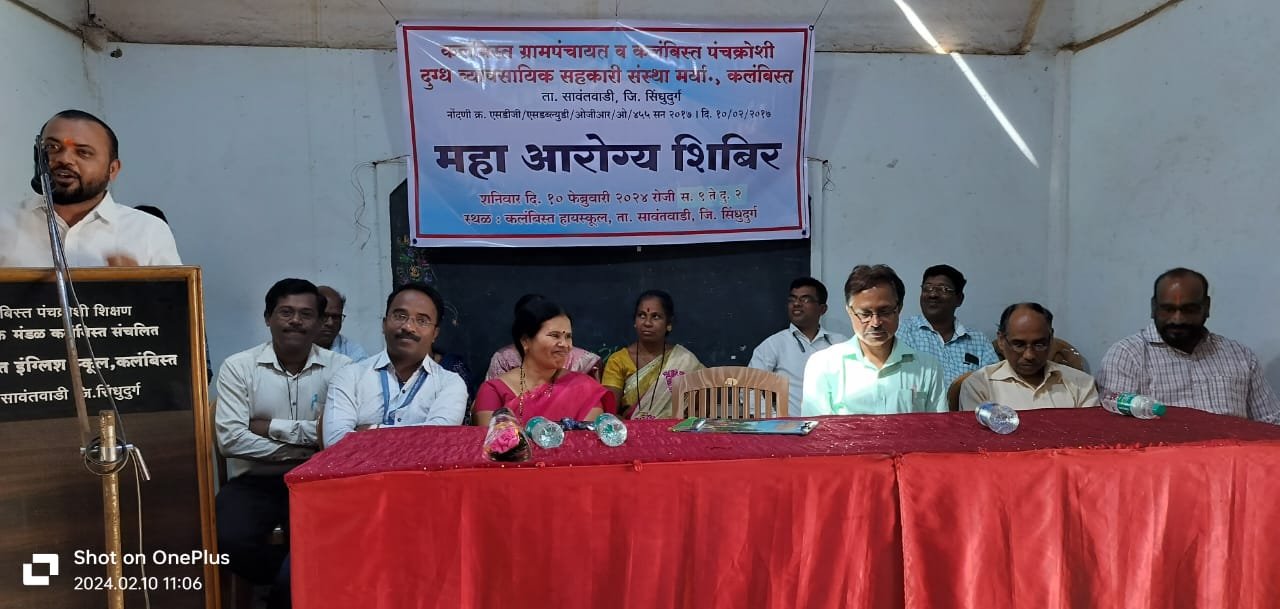 सावंतवाडी प्रतिनिधी: कलंबिस्त ग्रामपंचायत व कलंबिस्त पंचक्रोशी दुग्ध व्यवसाय सहकारी संस्था मर्यादित कलंबिस्त यांच्या संयुक्त विद्यमाने व कलंबिस्त हायस्कूलच्या सहभाग या निमित्ताने आयोजित केलेल्या महाआरोग्य शिबिरात जवळपास २०० रुग्णांनी लाभ घेतला. या महाआरोग्य शिबिरात आयुष्यमान भारत कार्ड १५ जणांनी त्याचाच लाभ घेतला या शिबिरामध्ये जिल्हा रुग्णालयाचा तज्ञ डॉक्टरांनी तपासणी केली.