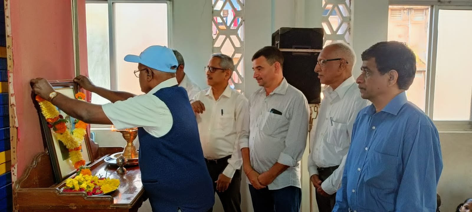 म्हापसा: कै रघुनाथ टोपले यांच्या प्रतिमेला पुष्पहार अर्पण करताना वामन कविटकर बाजूला जितेंद्र टोपले डॉ हरीश टोपले प्रशांत फेरारी तुषार टोपले दत्ता शिरोडकर नरेंद्र कामत