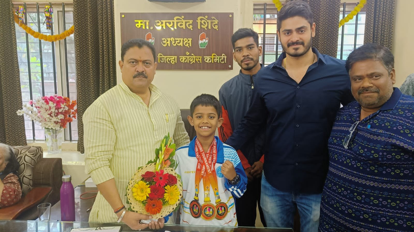 आज काँग्रेस भवन येथे शहराध्यक्ष अरविंदजी शिंदे यांनी त्याचा सत्कार केला.यावेळी युवक व क्रीडा सेलचे अध्यक्ष आशुतोष शिंदे आणि खडकी युवक व क्रीडा सेलचे अध्यक्ष जुबेर शेख हे उपस्थित होते.