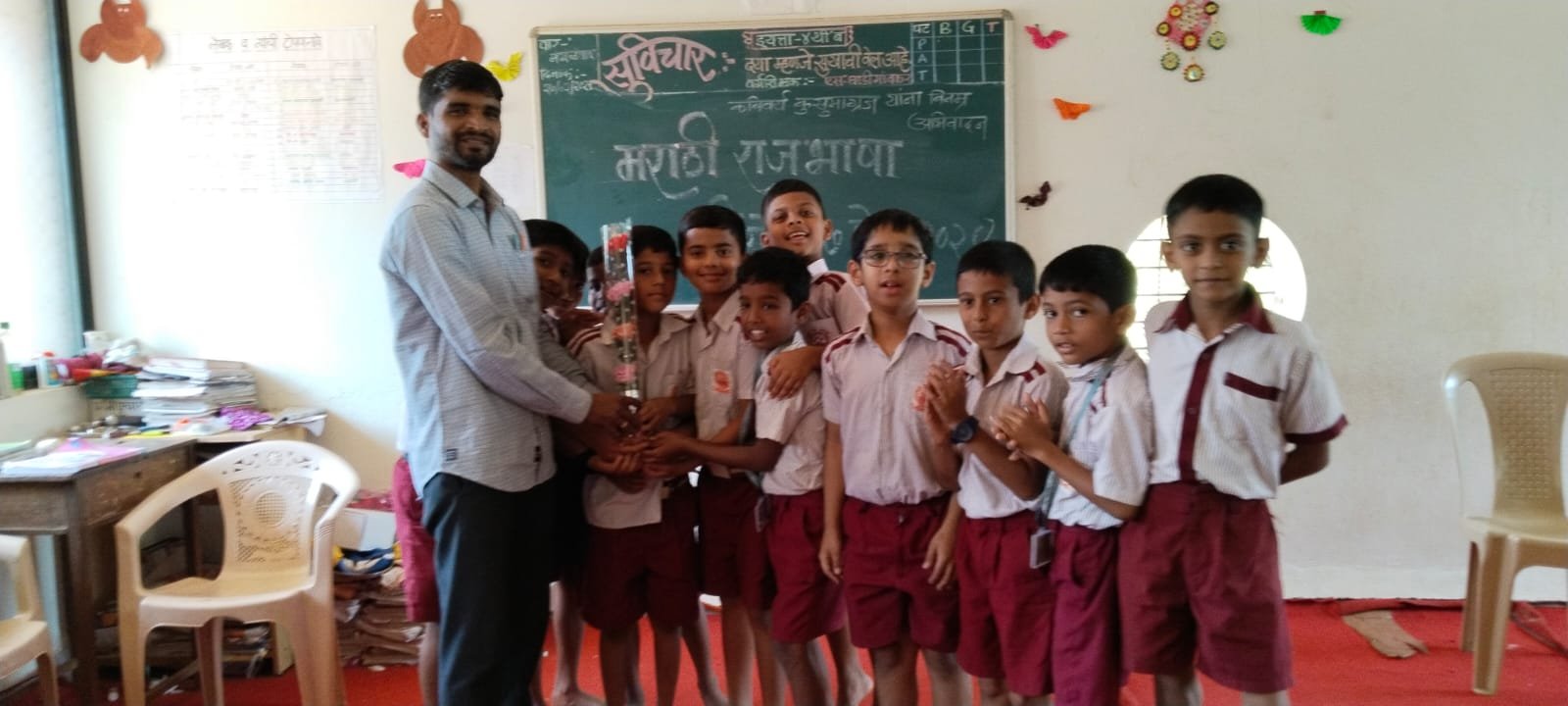 यावेळी वर्गशिक्षक श्री अमित कांबळे सर यांनी मराठी भाषेची गौरवगाथा सांगितली. तसेच मराठी भाषेचा इतिहास, मूल्ये, संस्कार यांची जपणूक करणे ही काळाची गरज आहे असे त्यांनी आपल्या मनोगततातून विचार व्यक्त केले. या कार्यक्रमासाठी शाळेचे मुख्याध्यापक श्री प्रदीप सावंत सर यांचे मुलांना प्रोत्साहन मिळाले व वर्गशिक्षक श्री. अमित कांबळे सर यांचे मार्गदर्शन लाभले.