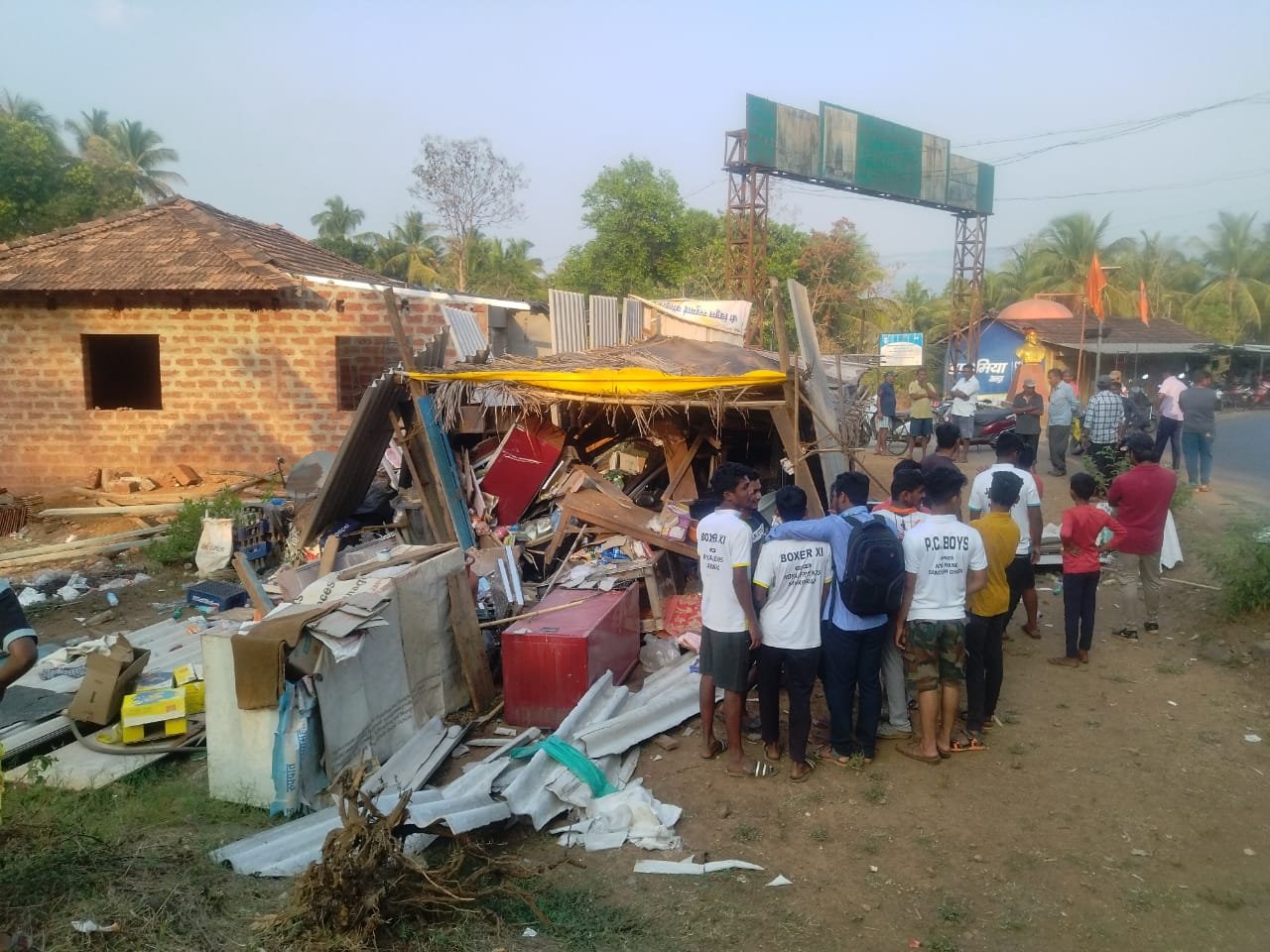 फोटो: सावंतवाडी सावरवाड येथे दुकानात कार घुसून असे नुकसान झाले आहे.