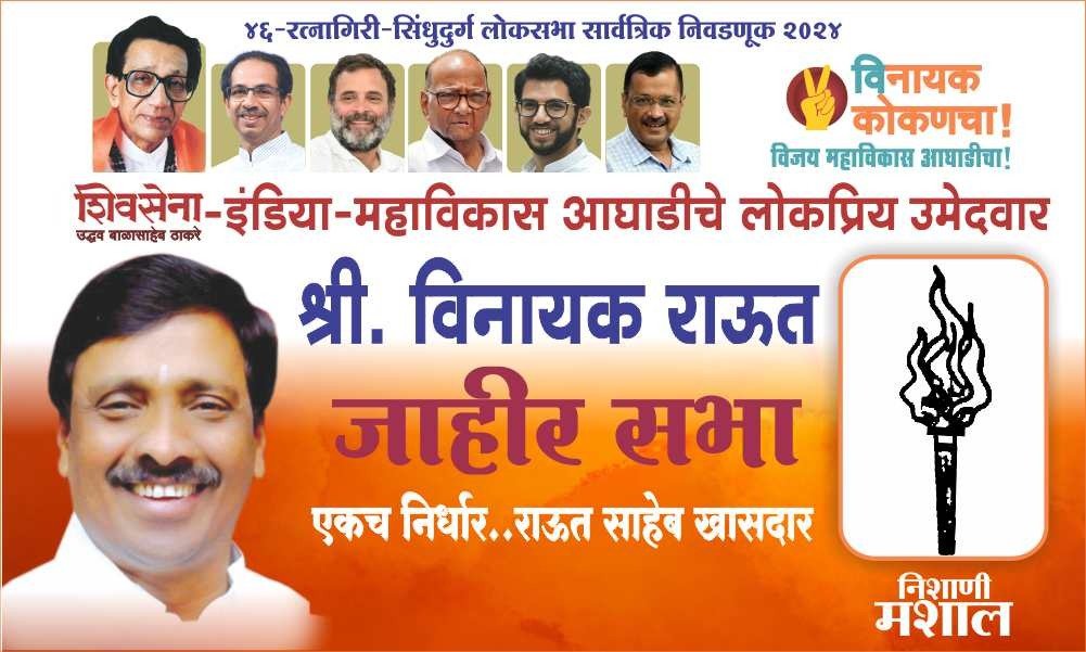 सिंधुदुर्ग: शिवसेना (उद्धव बाळासाहेब ठाकरे)– इंडिया- महाविकास आघाडीचे रत्नागिरी- सिंधुदुर्ग लोकसभा मतदारसंघाचे अधिकृत उमेदवार मा. श्री. विनायकजी राऊत साहेब यांची रविवार दि. २१ एप्रिल २०२४ रोजी शिवसेना उपनेते तथा कोल्हापूर-सिंधुदुर्ग संपर्कप्रमुख मा.श्री. अरुण दुधवडकर, शिवसेना माजी जिल्हा प्रमुख श्री. भाई गोवेकर, शिवसेना उपनेते श्री. गौरीशंकर खोत, लोकसभा समन्वयक श्री. प्रदीप बोरकर, आमदार श्री. वैभव नाईक, शिवसेना जिल्हा प्रमुख श्री. संदेश पारकर, उपनेते तथा शिवसेना महिला जिल्हा संघटक सौ. जान्हवी सावंत, कुडाळ मालवण विधानसभा संपर्कप्रमुख श्री.संग्राम प्रभुगांवकर, युवासेना कार्यकारिणी सदस्य तथा युवतीसेना जिल्हा विस्तारक कु. रुची राऊत, युवासेना विस्तारक श्री.गितेश राऊत, युवासेना जिल्हा प्रमुख श्री. मंदार शिरसाट यांच्या प्रमुख उपस्थितीतजाहीर प्रचार सभेचे आयोजन केले आहे. तरी सर्व इंडिया आघाडीचे पदाधिकारी, शिवसेना, युवासेना महिला आघाडी, युवतीसेना पदाधिकारी, शिवसैनिक-युवासैनिक, कार्यकर्ते, शिवसेना प्रेमी, ग्रामस्थ यांनी उपस्थित रहावे.