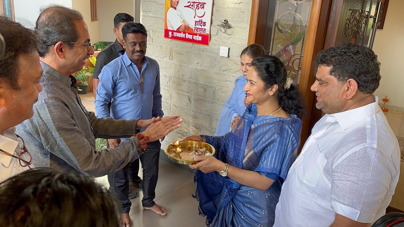 कणकवली: शिवसेना – इंडिया- महाविकास आघाडीचे सिंधुदुर्ग रत्नागिरी लोकसभा मतदारसंघाचे उमेदवार विनायक राऊत यांच्या प्रचारार्थ कणकवली येथील सरकारी रुग्णालयासमोरील पटांगनात माजी मुख्यमंत्री, शिवसेना पक्षप्रमुख उद्धवजी ठाकरे यांची जाहीर प्रचार सभा थोड्याच वेळात सुरू होणार आहे. नुकतेच उद्धवजी ठाकरे यांचे आमदार वैभव नाईक यांच्या कणकवली येथील निवासस्थानी आगमन झाले असून आमदार वैभव नाईक यांच्या पत्नी स्नेहा नाईक यांनी उद्धवजी ठाकरे यांचे औक्षण करून आ. वैभव नाईक, मुलगी नंदिनी नाईक, मुलगा राजवर्धन नाईक यांनी त्यांचे स्वागत केले.