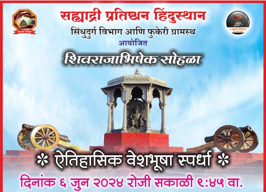 दोडामार्ग: सह्याद्री प्रतिष्ठान हिंदुस्थान सिंधुदुर्ग विभाग आणि फुकेरी ग्रामस्थ यांच्या संयुक्त विद्यमाने ३५० वा शिवराजाभिषेक सोहळा. दि.६ जून दिवशी फुकेरी येथील ऐतिहासिक किल्ले हनुमंत गडावर छत्रपती शिवाजी महाराज स्मारक येथे साजरा होत आहे. हनुमंत गडावरील शिवराज्याभिषेक सोहळ्याचे हे दुसरे वर्ष आहे. यानिमित वेषभूषा स्पर्धा, इतिहासाची साक्ष देणारे मर्दानी खेळ व व्याख्यान हे या शिवराज्याभिषेक सोहळ्याचे वैशिष्ट्य आहे. या गडावर सकाळी सात वा. पूजन व आरती, सकाळी ८ वा. शिवकालीन मर्दानी खेळ व प्रात्यक्षिक, ९.३० वा. मान्यवरांचे स्वागत, १० वा. वेशभूषा स्पर्धा, नंतर व्याख्यान, बक्षीस वितरण व दुपारी महाप्रसाद आदी कार्यक्रम होणार आहेत. यानिमित्त वेशभूषा स्पर्धा आयोजित केली आहे. ही स्पर्धा पाच मिनिटांची असून तीन ते १५ वर्ष वयोगटासाठी आहे. या स्पर्धेतील विजेत्यांना प्रमाणपत्र देण्यात येणार असून सहभागी स्पर्धकांना प्रशस्तीपत्र देण्यात येणार आहे. या वेशभूषा स्पर्धेच्या नावनोंदणीसाठी नीलेश ९४०४३६७७५२ यांच्याशी संपर्क साधावा, असे आवाहन दिनेश सावंत यांनी केले आहे.