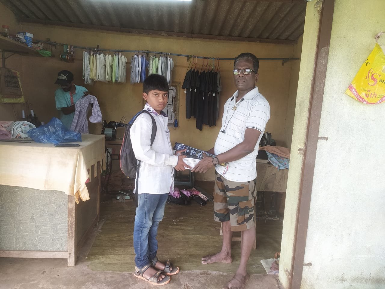 फोटो: सावंतवाडी सामाजिक कार्यकर्ते नंदू कदम यांनी निराधार सुरज राऊळ याला शैक्षणिक किट देताना