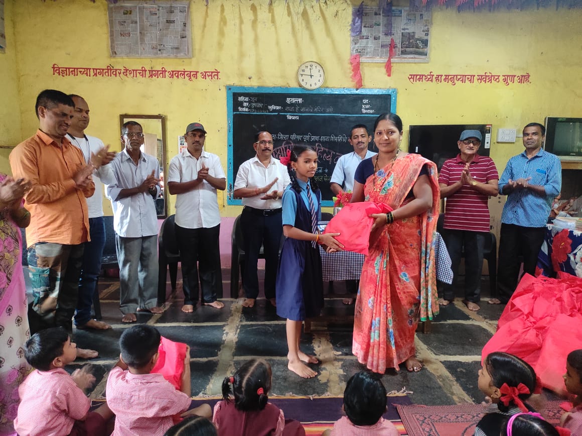 शैक्षणिक साहित्य वितरण प्रसंगी शालेय व्यवस्थापन समिती अध्यक्षा माधवी म. राऊळ, प्रमुख पाहुणे- सुकाणू समिती सदस्य भरत गावडे, उपाध्यक्ष फटू राऊळ, पांडुरंग राऊळ, ग्रामपंचायत सदस्य लक्ष्मण राऊळ, बाबाजी धोंड, समीर धोंड, राजेश गोवेकर, तुकाराम राऊळ, उपस्थित होते.