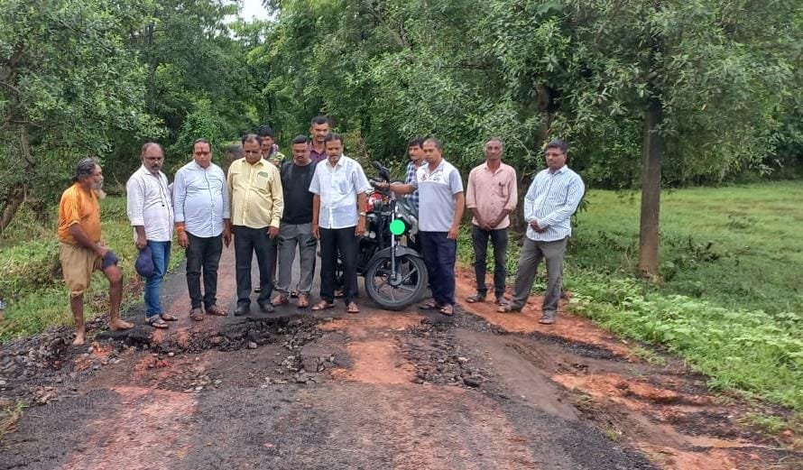 कुडाळ: कुडाळ तालुक्यातील अणाव मुख्य रस्ता ते घाटचेपेड वाडीकडे जाणारा रस्ता पहिल्याच पावसात दोन ठिकाणी वाहून गेला आहे. नाबार्ड योजने अंतर्गत सुमारे ३ कोटी रु या रस्त्यासाठी मंजूर करण्यात आले होते. पाऊस सुरु होण्याच्या कालावधीत हा रस्ता बनविल्यामुळे मजबूत न झाल्याने तो रस्ता पुराच्या पाण्यात वाहून गेला आहे. काल बुधवारी शिवसेना उपजिल्हाप्रमुख अमरसेन सावंत यांच्या नेतृत्वाखाली शिवसेना पदाधिकाऱ्यांनी रस्त्याची पाहणी केली.सध्यस्थितीची माहिती आमदार वैभव नाईक यांना देत हा रस्ता दुरुस्त करण्यासाठी सार्वजनिक बांधकाम विभागाकडे तक्रार करण्याची मागणी केली.