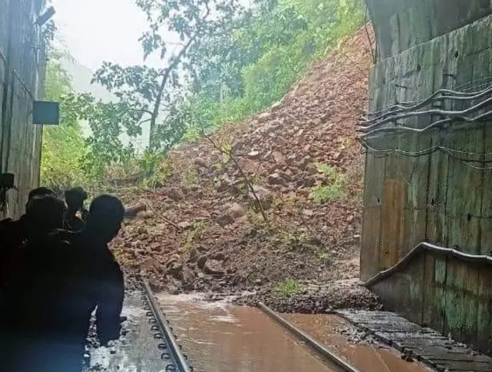 सावंतवाडी प्रतिनिधी: कोकण रेल्वे मार्गावरील दिवाणखवटी बोगद्यानजीक दि. १४ जुलै सायंकाळी मातीचा भराव रुळावर कोसळून ठप्प झालेली रेल्वे वाहतूक २४ तासानंतर हि पूर्वपदावर आलेली नाही. मुसळधार पावसामुळे रात्रीच्या सुमारास दरडही कोसळली. एक पोकलेन, जेसीबी व अन्य साधन साधनसामुग्री तसेच १००हुन अधिक कामगार यांच्या सहाय्याने दरड व मातीचा भराव हटवण्याचे काम युद्धपातळीवर सुरू होते. यावेळी एकूण १५ रेल्वे गाड्या रद्द करण्यात आल्या असून यात वंदे भारत एक्सप्रेस समावेश आहे. २० रेल्वे गाड्या अन्य मार्गे वळवण्यात आल्या आहेत. चार ते पाच एक्सप्रेस गाड्या त्या त्या स्थानकात थांबवण्यात आल्या असून प्रवाशांचे हाल झाले आहेत.
