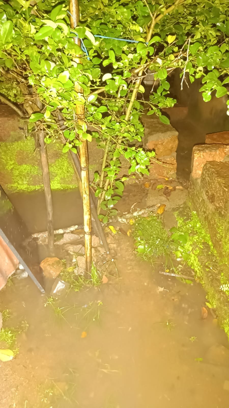 गेल्या ७ जुलैच्या पावसात घराभोवती पाणी साचले असता आपत्ती व्यवस्थापनला कळविल्यानंतर ते आले आणि तात्पुरता एक चिरा काढला. परंतु ही समस्या कायम असून गेले महिनाभर घराभोवती पाणी साचून आहे. तसेच तंटामुक्त समिती बैठकीतही संबंधिताने हे बांधकाम काढतो असे लिहून दिले होते परंतु त्याची पूर्तता न केल्याने ते कागदावरच राहिले. तसेच बांधकामासाठी ग्रामपंचायतकडे परवानगी मागितली आहे त्यात प्रथम दर्शनी संबंधिताने ग्रामपंचायतीची दिशाभूल केल्याचे स्पष्ट होते. त्यामुळे जिल्हा परिषद व पंचायत समिती प्रशासनाने ग्रामपंचायत अधिनियम १९५८ प्रमाणे संबंधितावर कारवाई करण्याचे आदेश देऊनही स्थानिक ग्रामपंचायत याबाबत टाळाटाळ करीत आह.