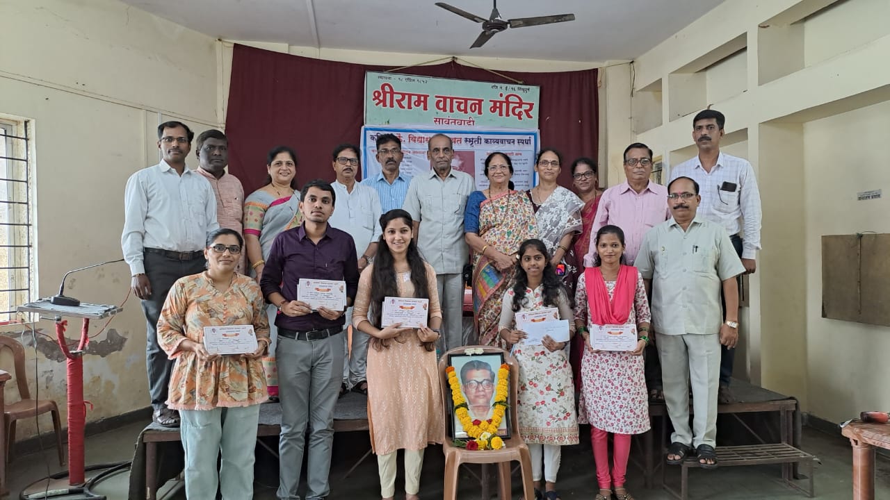 सावंतवाडी: रविवारी सकाळपासूनच सावंतवाडीत पाऊस धो धो कोसळत होता. मात्र या कोसळणाऱ्या पावसासोबतच सावंतवाडीच्या श्रीराम वाचन मंदिर मध्ये कवी व कवयित्रींच्या प्रतिभा शक्तीने काव्यधारा देखील बरसल्या. कोकणचे साहित्यरत्न व ज्येष्ठ साहित्यिक कै. विद्याधर भागवत स्मृती काव्यवाचन स्पर्धेचे यंदाचे १४ वे वर्ष होते. सलग चौदाव्या वर्षी स्वरचित काव्यवाचन स्पर्धा घेण्यात आल्या. यात तब्बल २५ कवी – कवयित्रींनी सहभाग नोंदविला. या स्पर्धेत प्रथम क्रमांक बांदा येथील मीनाक्षी अळवणी यांनी पटकावला तर द्वितीय सावंतवाडीचे अक्षय कानविंदे व तृतीय क्रमांक वेंगुर्ला येथील प्राजक्ता संकेत करंगुटकर तर उत्तेजनार्थ सावंतवाडीच्या योगिता शेटकर व द्वितीय उत्तेजनार्थ माया गवस यांनी पटकावला.