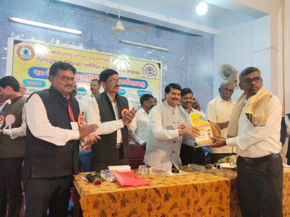 सावंतवाडी प्रतिनिधी: महाराष्ट्र राज्य गणित अध्यापक महामंडळ संलग्न सिंधुदुर्ग जिल्हा गणित अध्यापक मंडळाच्यावतीने दिला जाणारा यावर्षीचा आदर्श गणित शिक्षक पुरस्कार कुडासे येथील सरस्वती विद्यामंदिर व ज्युनिअर कॉलेजचे गणित शिक्षक एल. के. डांगी यांना प्रदान करण्यात आला. ओरोस येथील माध्यमिक शिक्षक पतपेढीच्या सभागृहात झालेल्या सिंधुदुर्ग जिल्हा गणित अध्यापक मंडळाच्या १० व्या अधिवेशनात शिक्षक आमदार ज्ञानेश्वर म्हात्रे यांच्याहस्ते मान्यवरांच्या उपस्थितीत एल के डांगी यांना हा पुरस्कार प्रदान करण्यात आला.