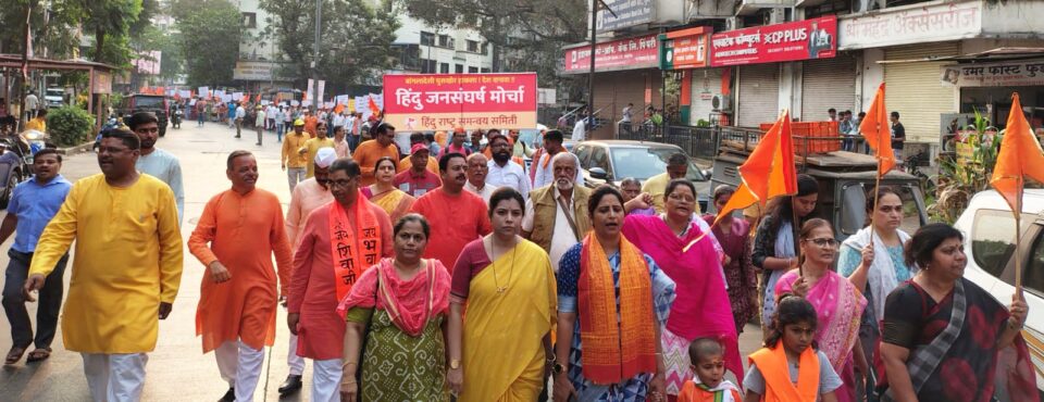 पुणे प्रतिनिधी: देशाच्या सुरक्षेसाठी प्रत्येक बांगलादेशी घुसखोर देशातून हद्दपार करा, बांगलादेशी घुसखोरांना आश्रय देणार्यांवर देशद्रोहाचे गुन्हे दाखल करा. संशयीत ठिकाणी कोंबिंग ऑपरेशन राबवून, बांगलादेशी घुसखोरांना शोधून काढा. पोलिसांना पूर्णपणे मोकळीक द्या, ते संपूर्ण देश बांगलादेशी घुसखोरमुक्त करतील. जोपर्यंत शेवटच्या बांगलादेशी घुसखोरावर कारवाई होऊन तो भारताच्या बाहेर जात नाही तोपर्यंत हिंदु राष्ट्र समन्वय समितीचे आंदोलन चालू राहणार आहे, *असे परखड प्रतिपादन हिंदु राष्ट्र समन्वय समितीचे राष्ट्रीय संघटक श्री. सुनील घनवट यांनी ‘बांगलादेशी घुसखोरांच्या विरोधातील मोर्चा’त केले.*