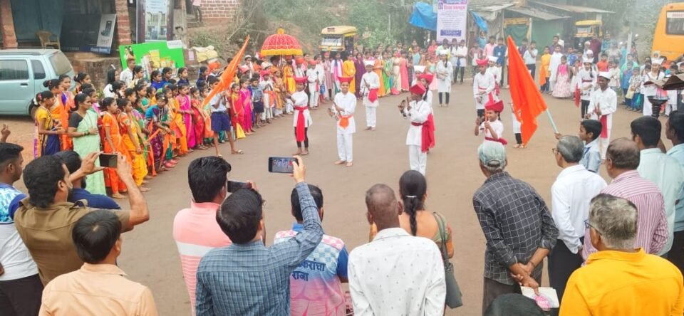 तसेच शिवजन्म प्रसंग, लेझीम नृत्य, पोवाडा, मर्दानी खेळ, नाटिका आदी सादर केल्या. यावेळी सर्व शाळांचे शिक्षक, ग्रामस्थ, विध्यार्थी, शिवप्रेमी उपस्थित होते. आभार विनोद सातार्डेकर यांनी मानले.
