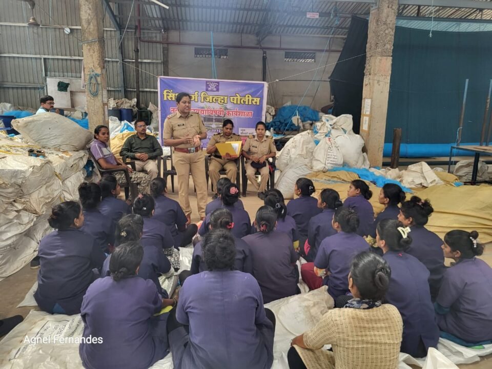 कुडाळ: महाराष्ट्र शासनाच्या १ जानेवारी २०२५ पासून सुरु करण्यात आलेल्या १०० दिवसांच्या ७ कलमी कृती आराखडयास अनुसरुन, मा. श्री सौरभ कुमार अग्रवाल, पोलीस अधीक्षक सिंधुदुर्ग व मा. श्री कृषीकेश रावले, अपर पोलीस अधीक्षक सिंधुदुर्ग यांचे मार्गदर्शनाखाली भरोसा सेल सिंधुदुर्ग मार्फतीने ग्रानफिशरीज प्रा.लि. एम. आय. डी. सी. कुडाळ येथील महिला/ पुरुष कामगार करीता जनजागृती कार्यक्रम आयोजीत करण्यात आला.