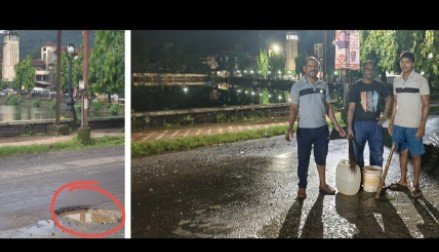 गेले कित्येक दिवसापासून श्रीराम वाचन मंदिर समोर मोती तलावाच्या काठी रस्त्याच्या मध्यभागी एक भला मोठा खड्डा पडला होता अपघात होण्याची शक्यता होती याचीच दखल घेऊन सामाजिक बांधिलकी प्रतिष्ठानच्या कार्यकर्त्यांकडून रहदारी व पाऊस कमी झाल्यावर आज पहाटे दोन वाजता सिमेंट काँक्रेटने सदर खड्डा बुजवण्यात आला.