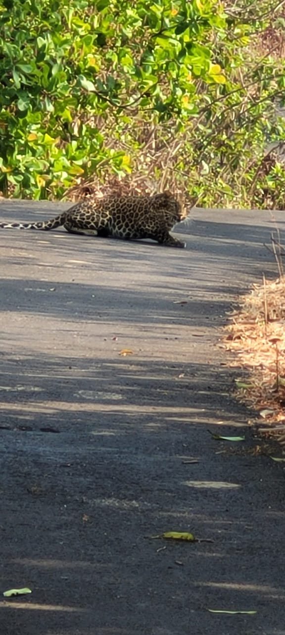 म्हसळा प्रतिनिधी (संजय खांबेटे): म्हसळा तालुक्यात सुमारे५२२१ हेक्टर क्षेत्रांत वनसंपत्ती आहे. त्यात बऱ्यापैकी वन्य प्राणी ,श्वापदे, औषधी वनस्पती मोठयाप्रमाणावर आहेत.काल शनी सायंकाळी ४ चे दरम्यान बिबट्याचे दर्शन म्हसळा- देवघर कोंड- कुडतोडी या निर्मनुष्य रस्त्यावर म्हसळ्यापासून ८ कि.मी. अंतरावर स्थानिक युवा बागायतदार मनीष संतोष चाळके याना झाले, मनिष म्हसळ्याहून आपल्या गावी कुडतोडी येथे जात होता , बिवट्या देवघर कोंड रस्त्याच्या वरील बाजूस वन विभागाच्या काजुचा माळ या भागांत सस्त्याच्या मधोमध निवांत बसलेला आढळला. मनिषने तात्काळ आपल्या मोबाईल मध्ये बिबटयाचा संचार कैद केला. मनिषने या परिररांत अद्यापही एक मोठा बिबटया असून त्याचेही अनेक वेळा दर्शन होत असते असे सांगितले. मौजे कुडतोडी, देवघर,देवघर कोंड या परिसरांतील ग्रामपंचायतीच्या – वाडी वस्तीवर नागरिकाना सर्तक ते चा इशारा दिला असून,रात्रीच्या वेळी जंगलात एकटे न फिरणे, जनावराना (गाय- बैल)एकटे न सोडणे याबाबत जनजागृती केली आहे.