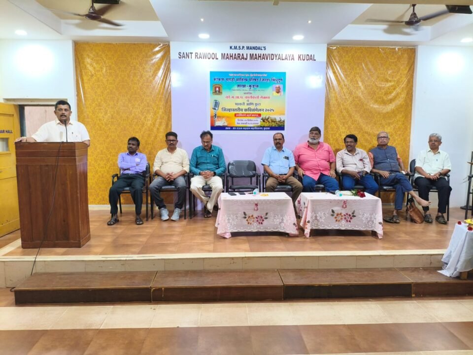 कुडाळ येथील श्री संत राऊळ महाराज महाविद्यालयाच्या सभागृहात कोकण मराठी साहित्य परिषद सिंधुदुर्ग व कुडाळ शाखेच्या संयुक्त विद्यमाने कोमसाप कार्यकर्ता मेळावा तसेच “भाकरी आणि फुल” जिल्हास्तरीय कवी संमेलन आयोजित करण्यात आले होते. या कार्यक्रमाचे उद्घाटन उद्घाटक तथा माजी जिल्हा परिषद उपाध्यक्ष श्री रणजित देसाई यांच्या हस्ते दीप प्रज्वलनाने करण्यात आले. यावेळी पुढे बोलताना ते म्हणाले, साहित्यिकांचे विचार सर्वप्रथम शालेय मुलांपर्यंत पोहोचले पाहिजे यासाठी जिल्हा परिषदेच्या शाळांनी कोकण मराठी साहित्य परिषदे सोबत संयुक्त उपक्रम राबवून मुलांमध्ये साहित्यिक विचार रुजविण्यासाठी एकत्रित काम केले पाहिजे. यासाठी तशा प्रकारच्या सूचना आपण जिल्हा परिषद शिक्षण विभागाला करणार आहे. यावेळी त्यांनी कोमसापच्या साहित्यिकांचा कार्यकर्ता मेळावा व भाकरी आणि फुल हे कवी संमेलन एकत्रित आयोजित केल्याबद्दल त्यांनी कोमसाप जिल्हा व कुडाळ शाखेचे विशेष कौतुक केले.