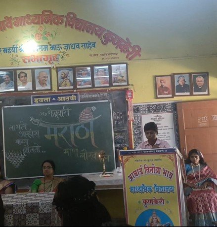 शनिवारी २८ फेब्रुवारीला २७ फेब्रुवारी मराठी भाषा दिन आणि विज्ञान दिन असे एकत्रित उपक्रम हायस्कूलमध्ये साजरा करण्यात आला. यावेळी कुसुमाग्रज यांच्या प्रतिमेचे तर विज्ञान दिनानिमित्त सी. व्ही. रामन यांच्या प्रतिमेचे पूजन करण्यात आले. यावेळी व्यासपीठावर अध्यक्षस्थानी मुख्याध्यापिका सौ अर्चना सावंत, विज्ञान शिक्षक मिहीर राणे, शिक्षका सौ. कांबळी आधी उपस्थित होते. कार्यक्रमाचे अध्यक्ष स्थान शाळेचे विद्यार्थी प्रवीण जंगले याने भूषवले. त्यांनी मराठी भाषेचा उगम यावर पोवाड्याच्या रूपात मराठी भाषेचा जागर केला.