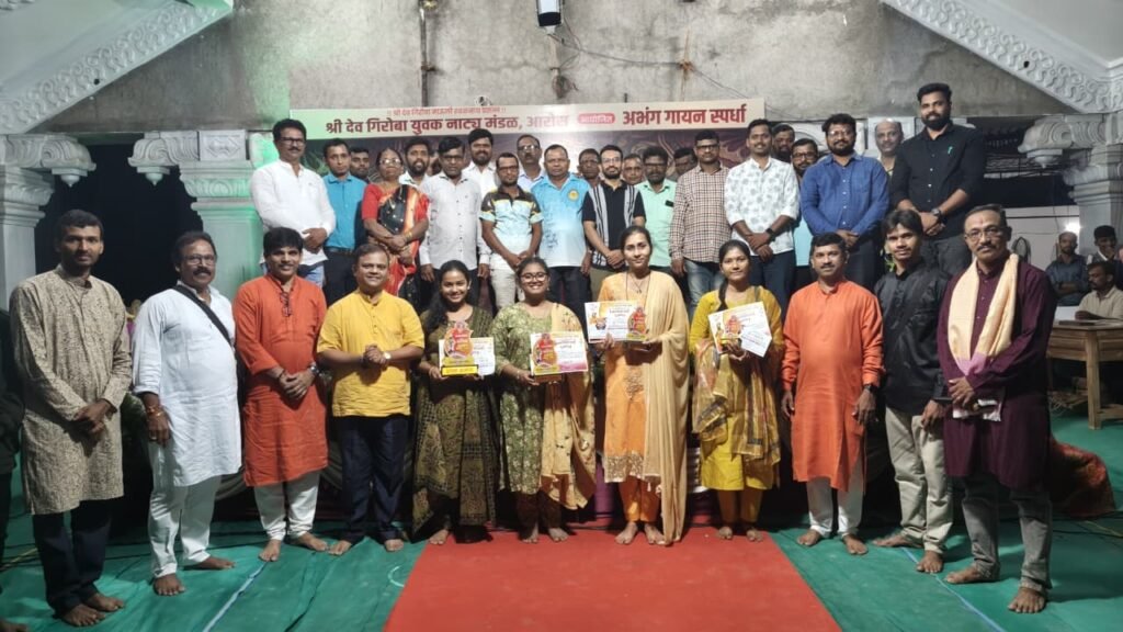 आरोस: सावंतवाडी तालुक्यातील आरोस येथील गिरोबा रंगमंचावर गुढीपाडवा व रामनवमी महोत्सव २०२६ चे आयोजन करण्यात आले होते. यावेळी श्री देव गिरोबा युवक नाट्य मंडळ, आरोस आयोजित अभंग गायन स्पर्धा दिनांक १९ व २० मार्च रोजी मोठ्या दिमाखात पार पडली. ही स्पर्धा बालगट व मोठा गट अशा दोन विभागात घेण्यात आली. या स्पर्धेत बाल गटात कु.दक्षता बाबुराव घोगळे हिने प्रथम क्रमांक पटकावला तर मोठ्या गटात कुडाळ येथील कु.श्रुती सावंत प्रथम क्रमांकाची मानकरी ठरली. तत्पूर्वी स्पर्धेचे उद्घाटन मान्यवरांच्या हस्ते दीपप्रज्वलनाने व शिवसेना जिल्हाप्रमुख तथा सावंतवाडी नगरपालिकेचे नगरसेवक सच्चिदानंद उर्फ संजु परब यांच्या शुभहस्ते श्रीफळ वाढवून पार पडले. यावेळी आरोंदा जि.प.सदस्य सुदन कवठणकर, मळेवाड जि.प. सदस्या सौ. अपर्णा प्रभू , सातार्डा पं. स. सदस्य उदय पारिपत्ये, मळेवाड पं. स. सदस्या सौ धनश्री मराठे, आरोंदा पं. स.सदस्या सौ.स्नेहा कांबळी, न्हावेली पं.स.सदस्य श्री शरद धाऊसस्कर, कोकण मराठी साहित्य परिषद सावंतवाडी तालुकाध्यक्ष कवी दीपक पटेकर, शिवसेना युवा तालुकाध्यक्ष क्लेटन फर्नांडिस, बाळा शिरसाट, निलेश उर्फ बाळा परब, निखिल नाईक, प्रसाद नाईक आदी मान्यवर उपस्थित होते.