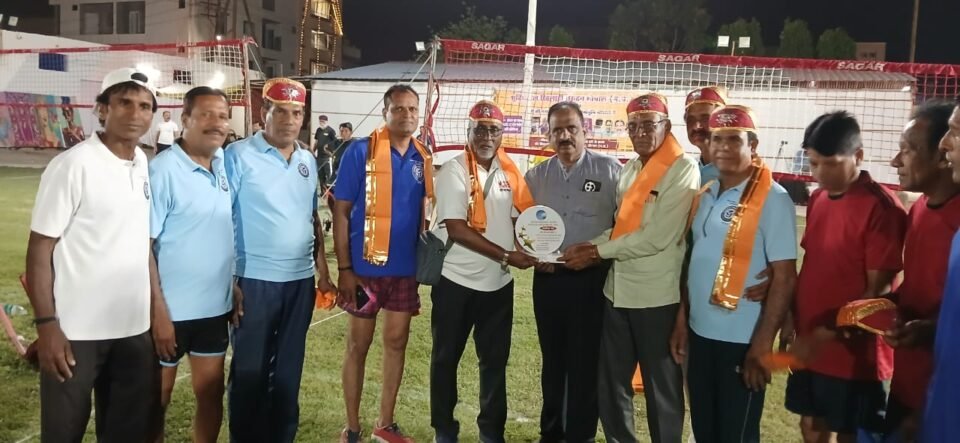 मसुरे प्रतिनिधी: बैरागड, भोपाळ, मध्यप्रदेश येथे शूटिंगबॉल प्लेयर्स फाऊंडेशन (रजि.) आयोजित तिसऱ्या पन्नास प्लस वरिष्ठ गट अखिल भारतीय शुटिंगबॉल स्पर्धेचे औचित्य साधून वेंगुर्ले तालुक्यातील दाभोली गावचे सुपुत्र भूतपूर्व फेडरेशन रेफरी अशोक दाभोलकर ह्याना त्यानी क्रीडा क्षेत्रात दिलेल्या उल्लेखनीय योगदानाबद्दल फेडरेशन सदस्य व राष्ट्रीय खेळाडू श्री. सुबोध श्रीवास्तव ह्या़चे शुभहस्ते शाळ-श्रीफळ, स्मृतिचिन्ह व पारंपरिक फेटा देऊन सन्मानीत करण्यात आले.