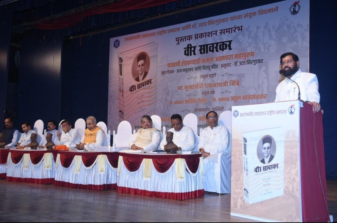 सावरकर यांच्या विचारांमुळे भारत वेगाने महासत्ता होईल! उदय माहुरकर, केंद्रीय माहिती आयुक्त, केंद्रशासनस्वातंत्र्यवीर सावरकर हे ‘राष्ट्रीय सुरक्षा’ या विषयाचे पितामह होते. चीनच्या धोक्याची त्यांनी केलेली भविष्यवाणी तंतोतंत खरी ठरली. गौतम बुद्ध यांच्या निर्वाणानंतर काही वर्षांनी त्यांची ओळख जगाला झाली. त्याप्रमाणे स्वातंत्र्याच्या ७५ वर्षांनंतर स्वातंत्र्यवीर सावरकर यांची ओळख राष्ट्राला होत आहे. काँग्रेसने स्वातंत्र्यवीर सावरकर यांचे कर्तृत्व डावलल्याने देशाची मोठी हानी झाली. आता सावरकरयुगाला प्रारंभ झाला आहे. त्यांच्या विचारांवर चाललो, तरच भारत वेगाने महासत्ता होईल.पुस्तकाचे प्रकाशन हा माझ्यासाठी कृतज्ञता सोहळा ! – डॉ. उदय निरगुडकर, ज्येष्ठ पत्रकार आणि अभ्यासकमाझे आजोबा आणि स्वातंत्र्यवीर सावरकर यांचे घनिष्ठ संबंध होते. या पुस्तकाचे प्रकाशन म्हणजे माझ्यासाठी कृतज्ञतेचा सोहळा आहे.आमदार आशिष शेलार यांनी ‘स्वातंत्र्यवीर सावरकर समजून घेणे, ही राष्ट्राची आवश्यकता आहे’, असे सांगितले. आमदार अतुल भातखळकर यांनीही त्यांचे विचार मांडले. कार्यक्रमाचे प्रास्ताविक श्री. रणजित सावरकर यांनी केले, तर सूत्रसंचालन श्री. स्वप्नील सावरकर यांनी केले. ‘वन्दे मातरम्’ने कार्यक्रमाची सांगता झाली.
