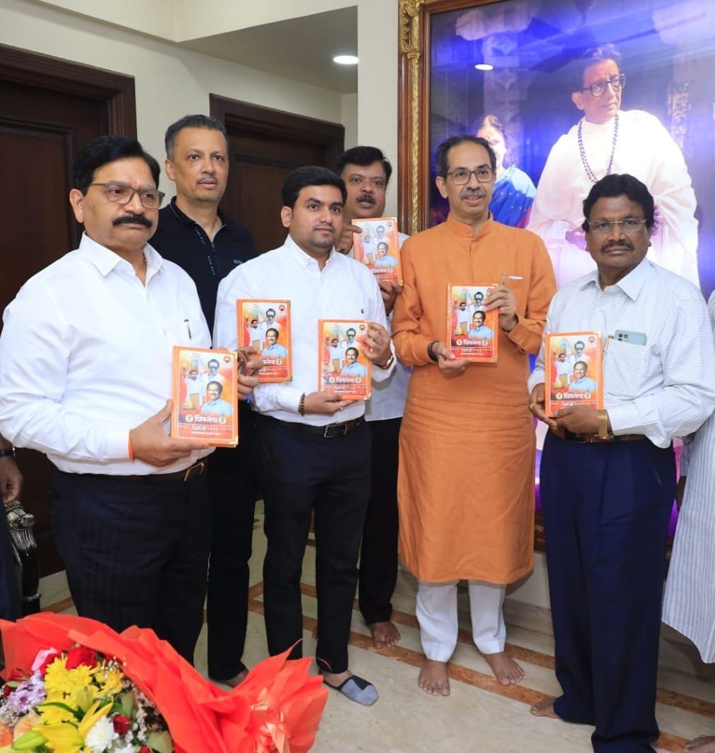 फोटो: शिवसेना पक्षप्रमुख तथा माजी मुख्यमंत्री उद्धव ठाकरे यांच्या शुभहस्ते मुंबई मातोश्री येथे उद्धव बाळासाहेब ठाकरे शिवसेना पक्षाच्या दैनंदिनीचे प्रकाशन करण्यात आले यावेळी सोबत आमदार श्री रवींद्र वायकर, सचिव श्री मिलिंद नार्वेकर, जनसंपर्कप्रमुख श्री हर्षल प्रधान, दैनंदिनी निर्मिती प्रमुख जी एस परब व सांकेत पवार…