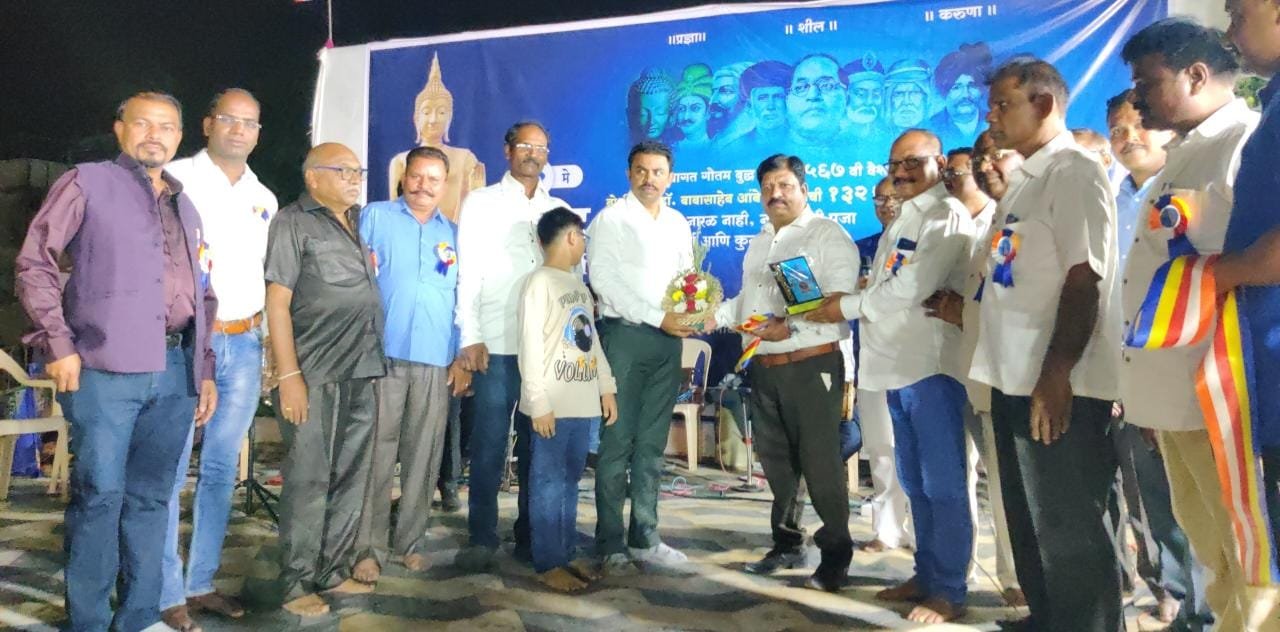 कल्याण प्रतिनिधी:(आनंद गायकवाड):- अखिल विश्वाला शांतीचा संदेश देणारे तथागत गौतम बुद्ध आणि भारतीय घटनेचे शिल्पकार डॉ. बाबासाहेब आंबेडकर यांचा संयुक्त जयंती उत्सव कल्याण पूर्वेतील संबोधी बुध्द विहाराच्या प्रांगणात विविध कार्यक्रमांच्या आयोजनाने मोठ्या उत्साहात साजरा करण्यात आला. कालकथीत वसंतशेठ सोनवणे यांनी स्थापन केलेल्या श्री मलंग रोड वरील संबोधी बुद्ध विहारात या संयुक्त जयंती महोत्सवाचे आयोजन करण्यात आले होते . तथागात गौतम बुध्द यांच्या २५६७ व्या जयंती दिनी आयोजित करण्यात आलेल्या या जयंती उत्सवाच्या सकाळच्या सत्रात प्रारंभी बौध्द धम्माचे प्रतिक असलेल्या पंचशील ध्ववजाचे ध्वजारोहण करण्यात आले. त्यानंतर भंतेजी दिनकर यांनी धम्मदेशने तून उपस्थितांना बौध्द धम्माची महती पटवून दिली .सायंकाळी मनोरंजनातून समाज प्रबोधन व्हावे या उद्देशाने विजय विटे संचालित ‘सप्तसूर महाराष्ट्राचा’ या गित – संगित प्रधान कार्यकमातून डाँ . बाबासाहेब आंबेडकर आणि तथागत गौतम बुद्ध यांच्या जिवनावर आधारीत गिते सादर करून उपस्थितांचे मनोरंजातून प्रबोधन करण्यात आले . या संगीतमय कार्यक्रमाचे सुत्र संचलन अभिनेते सुनिल जगताप यांनी केले.
