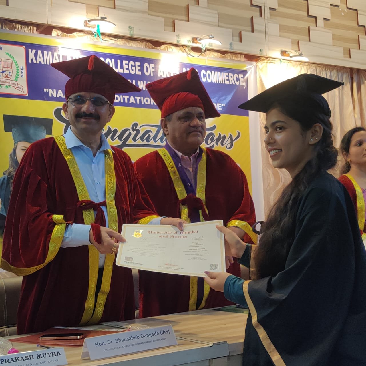 या समयी उपस्थितांना संबोधीत करतांना त्यांनी हे विचार व्यक्त केले. महाविद्यालयीन जीवनामध्ये तुम्हाला मिळालेले मित्र-मैत्रिणी हा सगळ्यात मोठा-मौल्यवान ठेवा असून जेव्हा केव्हा तुम्ही जीवनामध्ये निराश होतात तेव्हा तुम्ही कॉलेजमध्ये येऊन मित्र-मैत्रिणींना भेटल्यास तुम्हाला एक नवीन ऊर्जा प्राप्त होते, मी स्वतःही देखील जेव्हा परळ येथील पशुवैद्यकीय कॉलेजमध्ये जातो तेव्हा मी परत येताना पुढील आयुष्यासाठी ऊर्जा घेऊन येतो. आपणही आपल्या महाविद्यालयातील मित्र-मैत्रिणींच्या संपर्कात राहून ही ऊर्जा जतन करावी असेही ते पुढे म्हणाले. पदवी नंतर पुढील स्पर्धा परिक्षां आणि उच्च शिक्षणासाठी त्यांनी विद्यार्थ्यांना शुभेच्छा दिल्या. यावेळी पदवी परिक्षा उत्तीर्ण झालेल्या विद्यार्थ्यांना मुंबई विद्यापीठाकडून प्राप्त झालेली पदवी प्रमाणपत्रे डॉ.भाऊसाहेब दांगडे यांचे हस्ते प्रदान करण्यात आली.या महाविद्यालयामध्ये सुमारे ४००० विद्यार्थी शिक्षण घेत असून जवळपास ४०० विद्यार्थ्यांनी २०२१-२२ मध्ये पदवी परीक्षा उत्तीर्ण केलेली आहे अशी माहिती कमलादेवी आर्ट सायन्स अँड कॉमर्स कॉलेजचे चेअरमन सदानंद तिवारी यांनी यावेळी दिली.