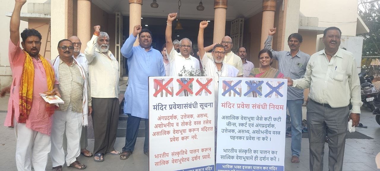 नागपूर जिल्ह्यातील श्री गोपालकृष्ण मंदिर, धंतोली; श्री संकटमोचन पंचमुखी हनुमान मंदिर, बेलोरी, सावनेर; श्री बृहस्पती मंदिर, कानोलीबारा आणि श्री हिलटॉप दुर्गामाता मंदिर, मानवतानगर या चार मंदिरांमध्ये वस्त्रसंहिता लागू करण्याचा निर्णय एकमुखाने घेण्यात आला. या वेळी श्री गोपालकृष्ण मंदिराचे विश्वस्त श्री. प्रसन्न पातुरकर, मंदिर कमिटीप्रमुख सौ. ममताताई चिंचवडकर आणि श्री. आशुतोष गोटे यांनी मंदिराचे पावित्र्यरक्षण आणि भारतीय संस्कृती यांचे पालन व्हावे, या उद्देशाने मंदिरामध्ये भाविकांनी येतांना अंगप्रदर्शन करणारे उत्तेजक तथा तोकडे कपडे घालून येऊ नये, तसेच भारतीय संस्कृतीचे पालन करून मंदिर प्रशासनात सहकार्य करावे, अशा प्रकारचे आवाहन केले. तसा फलकही मंदिराच्या दर्शनी भागात लावण्यात आला आहे.