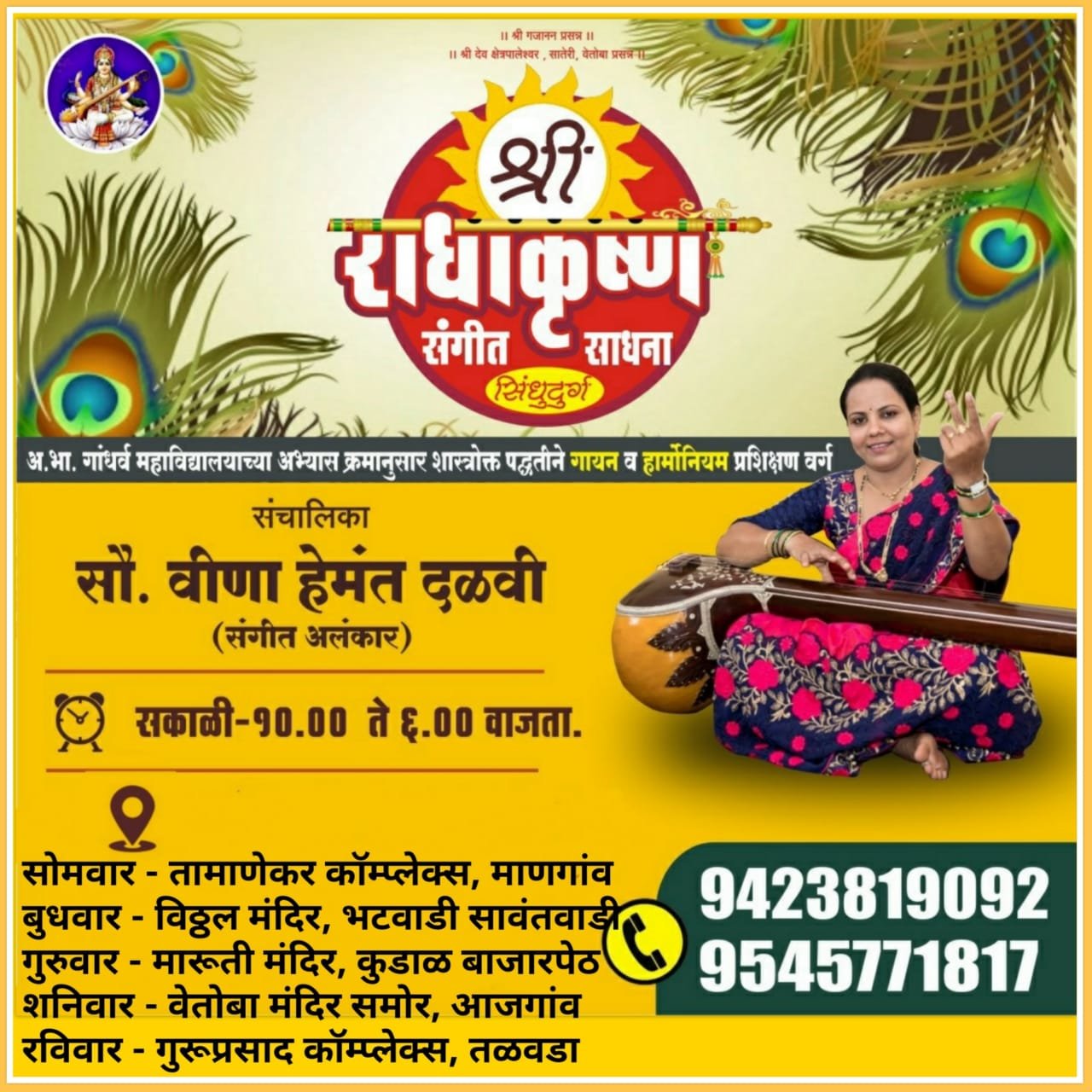 सावंतवाडी प्रतिनिधी: अ.भा. गांधर्व महाविद्यालयाच्या एप्रिल २०२३ च्या संगीत परिक्षेत सौ. वीणा दळवी संचलित ‘श्री राधाकृष्ण संगीत साधना‘च्या विद्यार्थ्यांनी उल्लेखनीय यश मिळवले आहे.