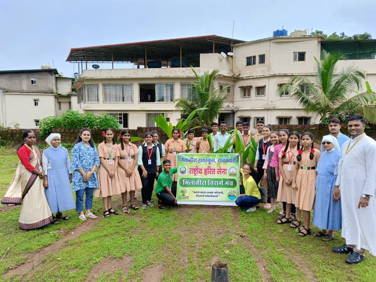सावंतवाडी प्रतिनिधी: मिलाग्रीस हायस्कूलच्या हरित मंचाने शाळेचे मुख्याध्यापक रे. फादर रिचर्ड सालदान्हा यांच्या मार्गदर्शनाखाली वृद्धाश्रम निरवडे व निरवडे कोनापाल जंक्शन येथील रिकाम्या प्लॉटवर आंबा व काजू यांची रोपे लावून दिनांक 23 जुलै 2023 रोजी वृक्षारोपण केले हा उपक्रम राबवताना मुख्याध्यापक रे.फादर रिचर्ड सालढान्हा यांच्यासोबत इयत्ता नववीचे हरित सेनेचे अकरा विद्यार्थी व श्रीम. संध्या मुणगेकर, झेबा बेग, अमोल राऊळ, निलराज सावंत आदी शिक्षक सहभागी झाले होते.